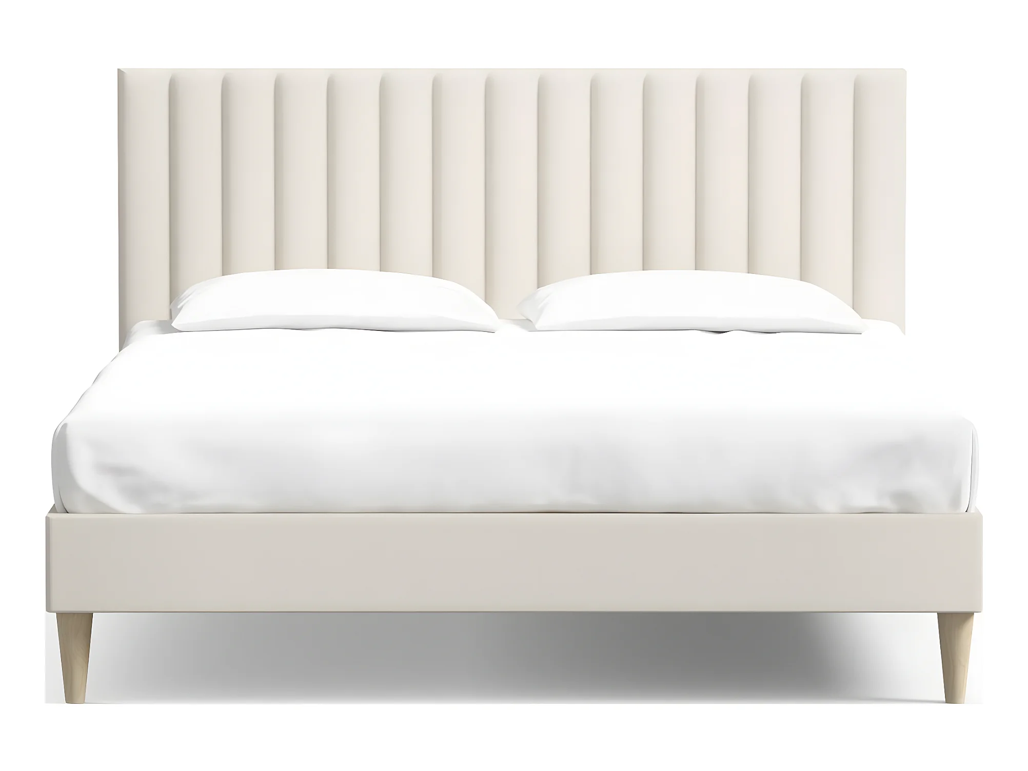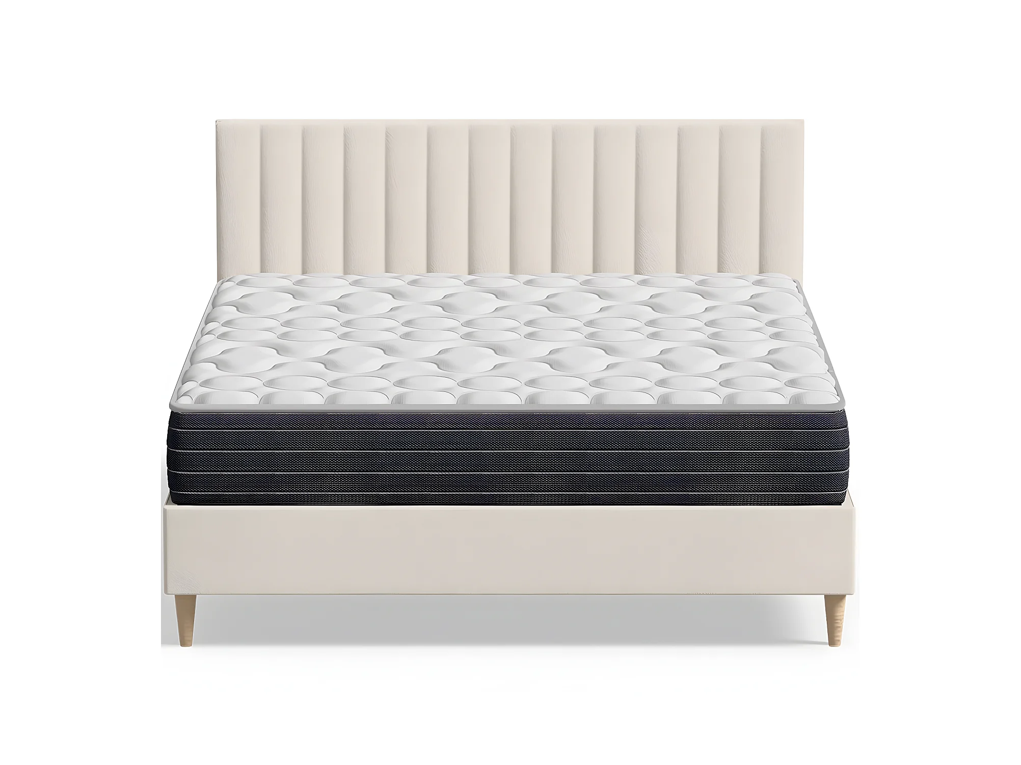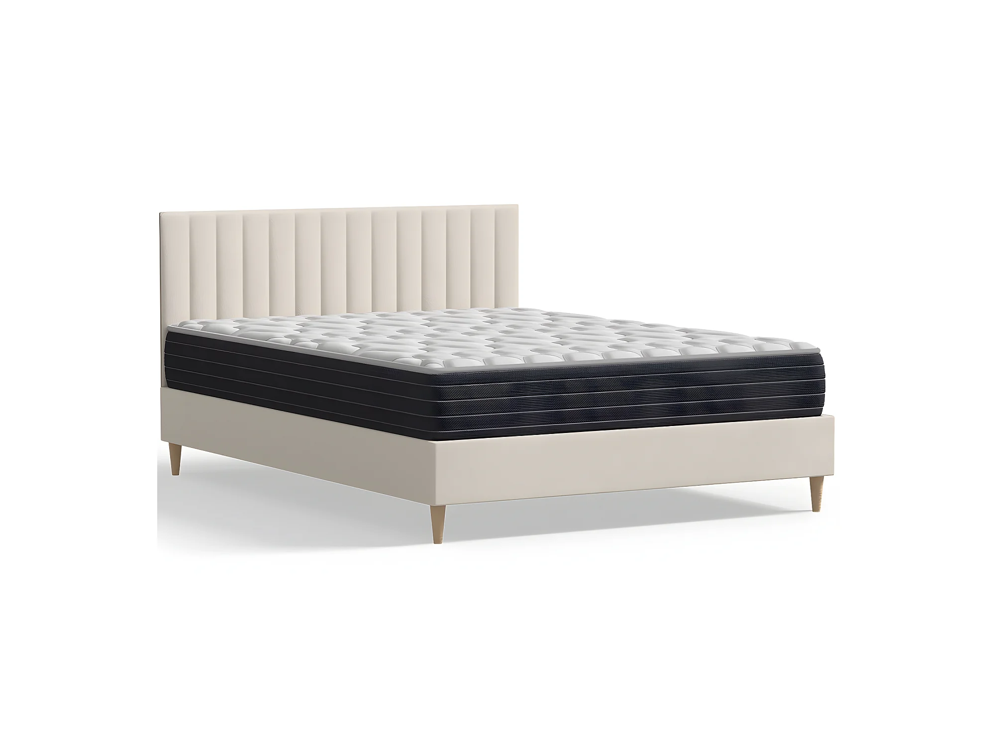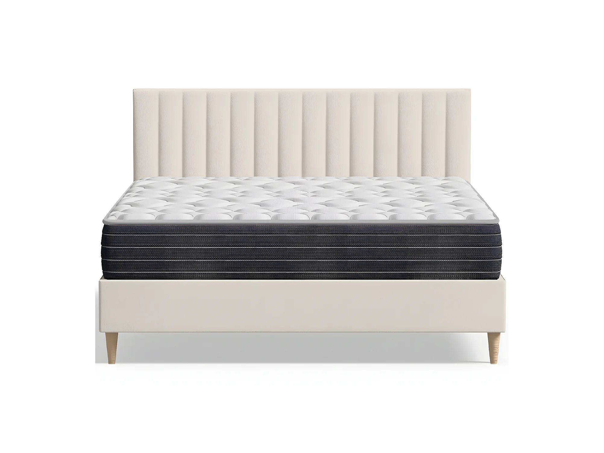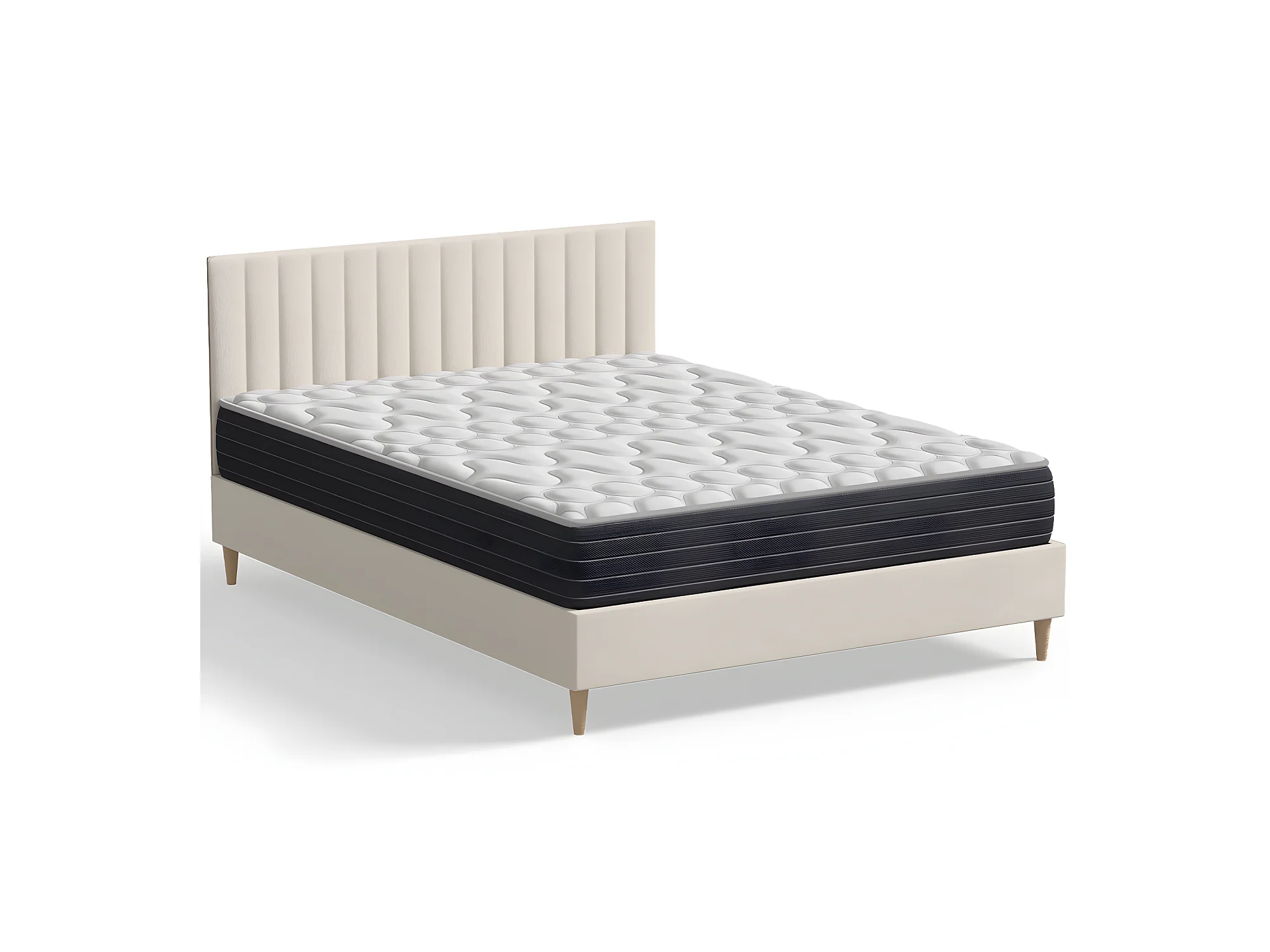 Ensemble lit adulte 140x190 cm en velours beige avec tête de lit matelassée Eliot + Matelas mémoire de forme Memo HR