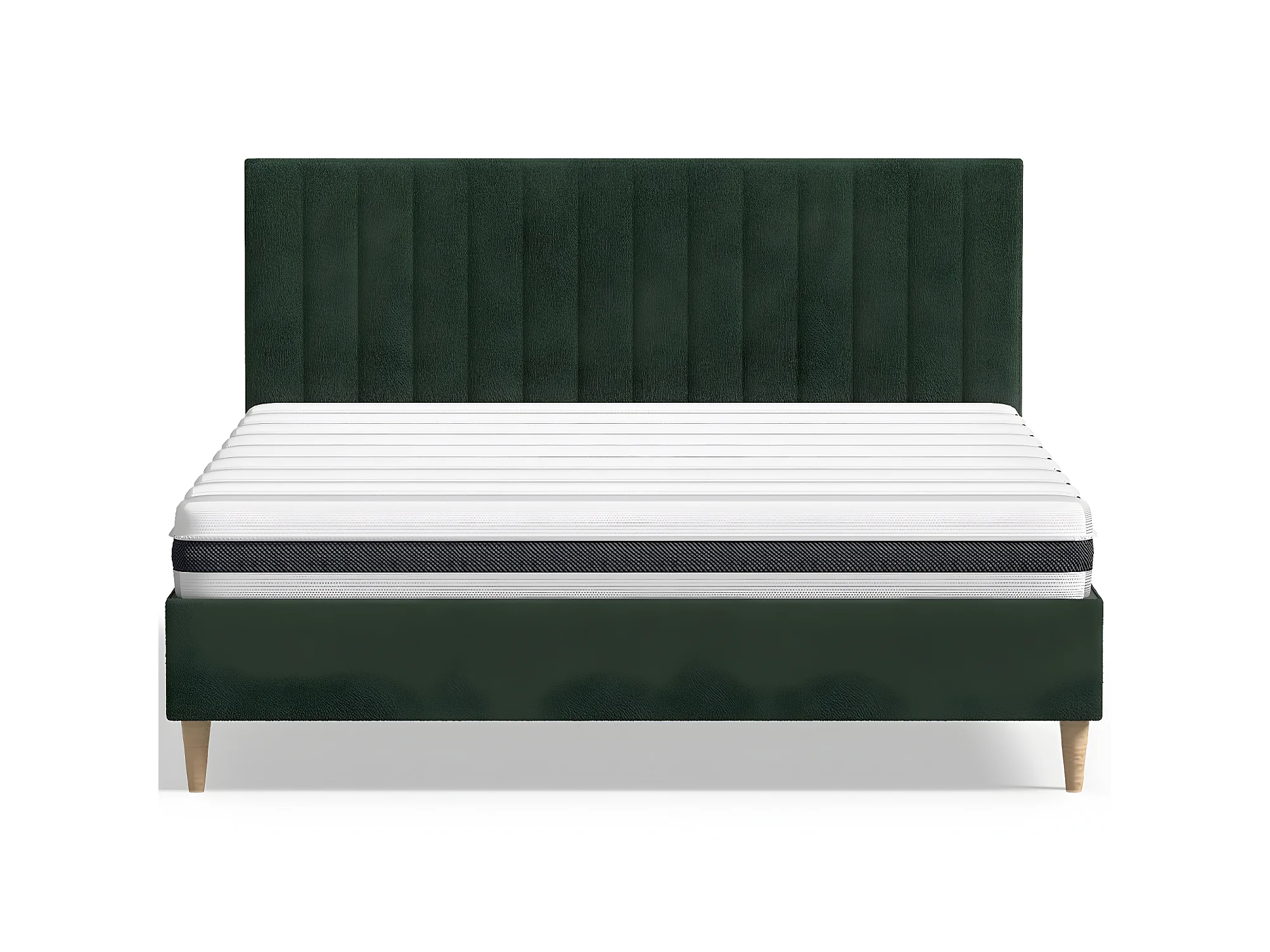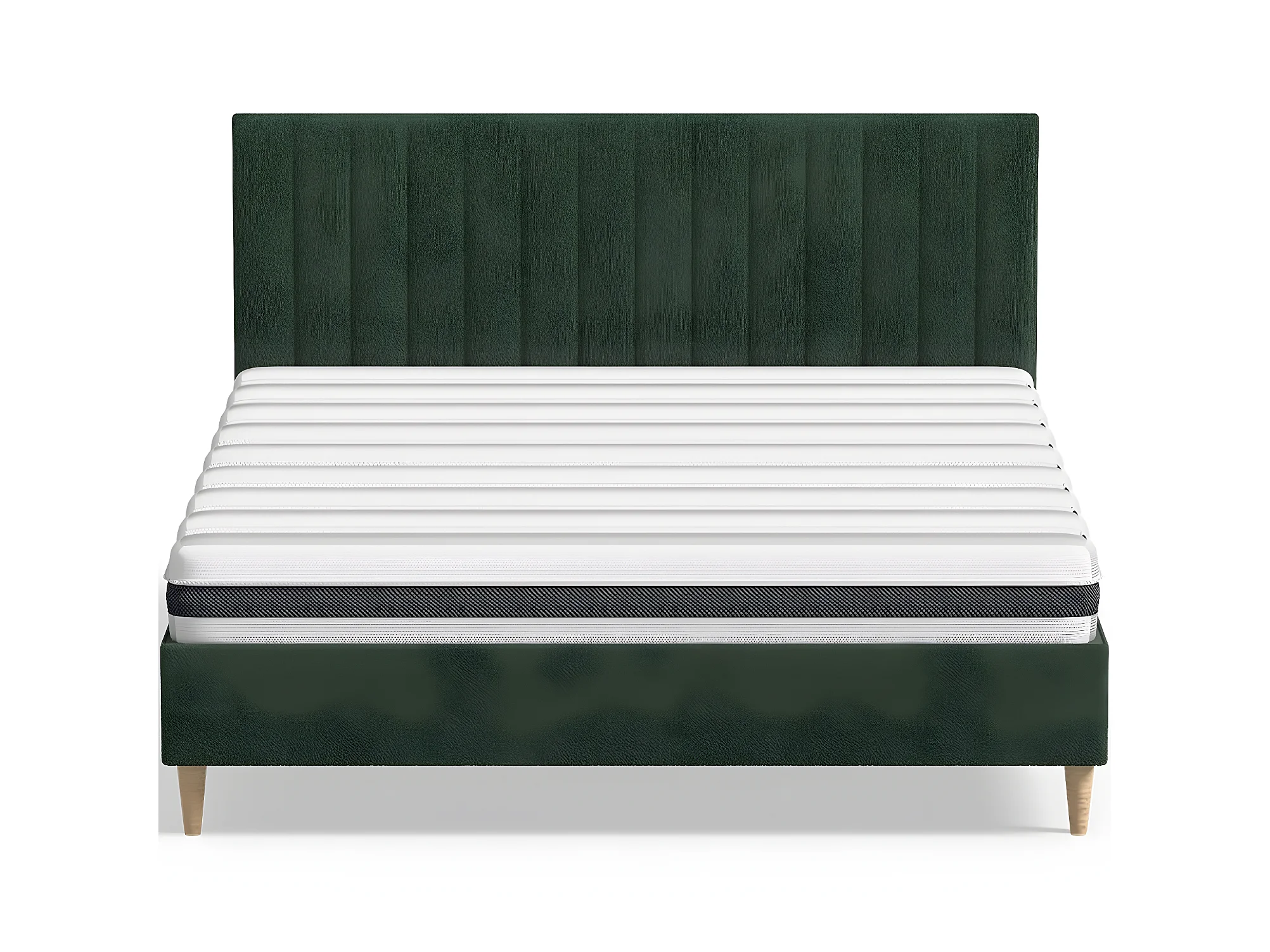 Ensemble lit adulte 140x190 cm en velours vert avec tête de lit matelassée Eliot + Matelas ressorts ensachés Mousse HR