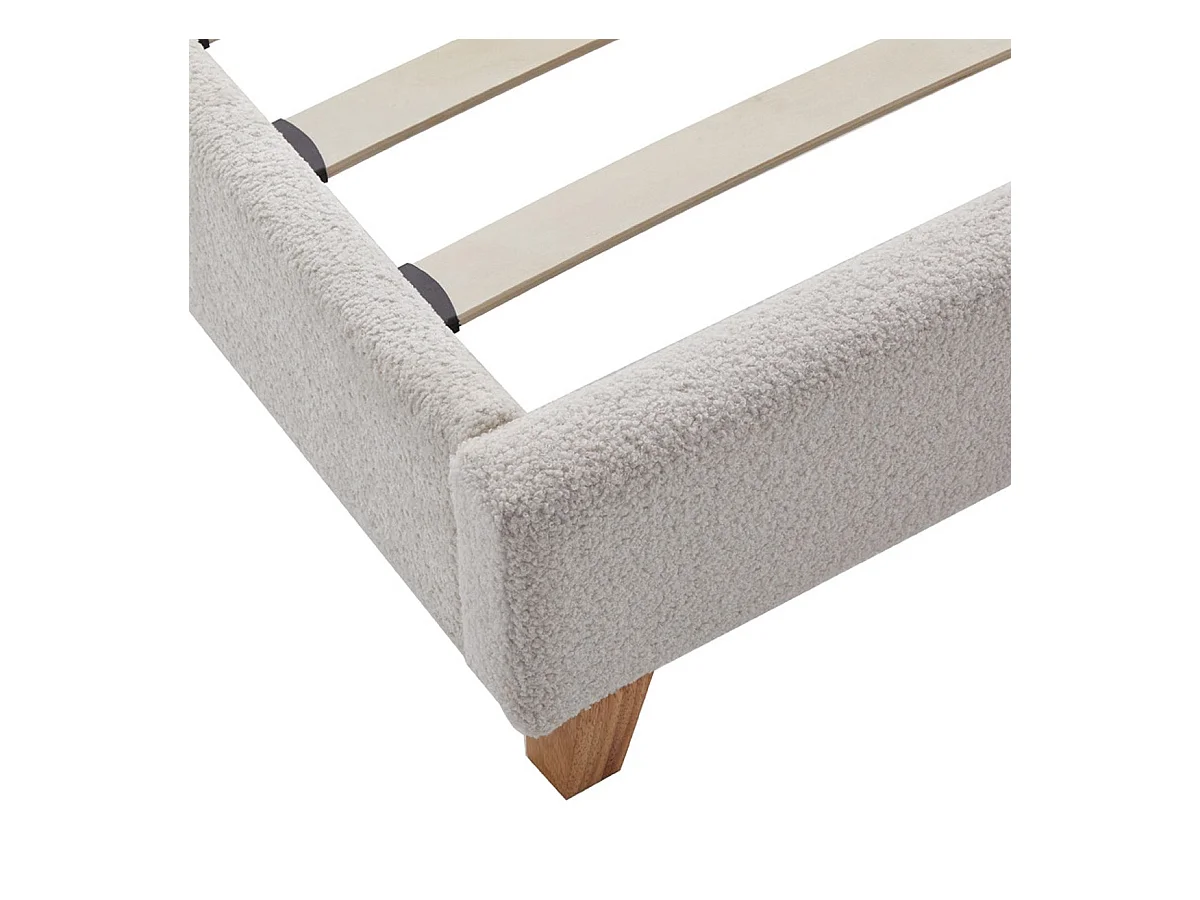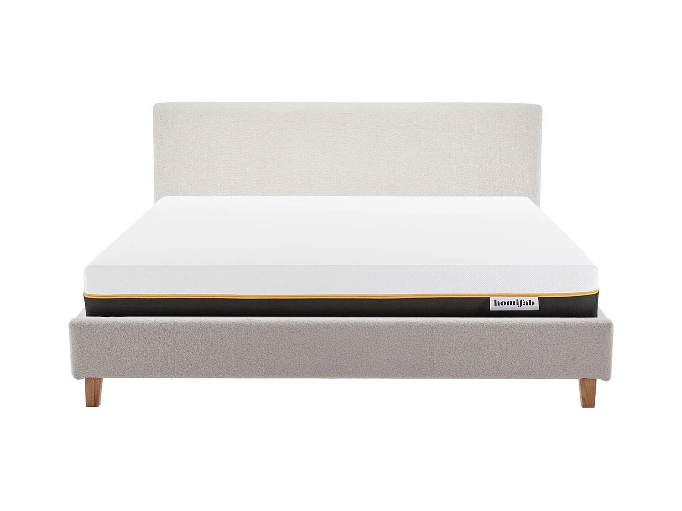Ensemble Lit adulte 140x190cm avec tête de lit en tissu bouclé beige - Milo + Matelas mémoire de forme - Dual Confort