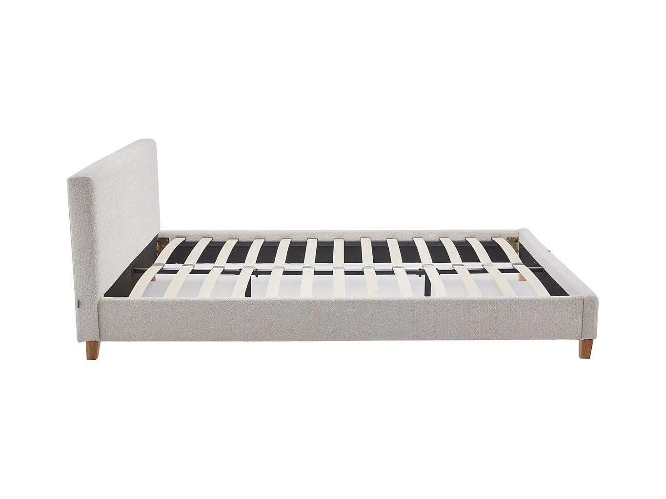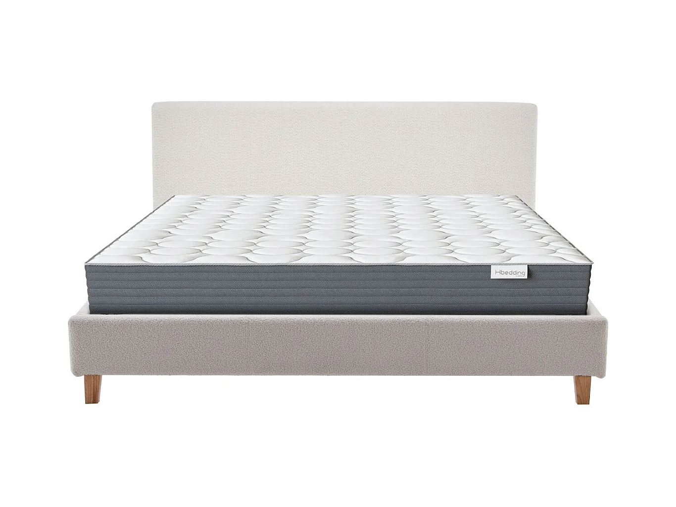 Ensemble Lit adulte 140x190cm avec tête de lit en tissu bouclé beige - Milo + Matelas mémoire de forme - Memo HR