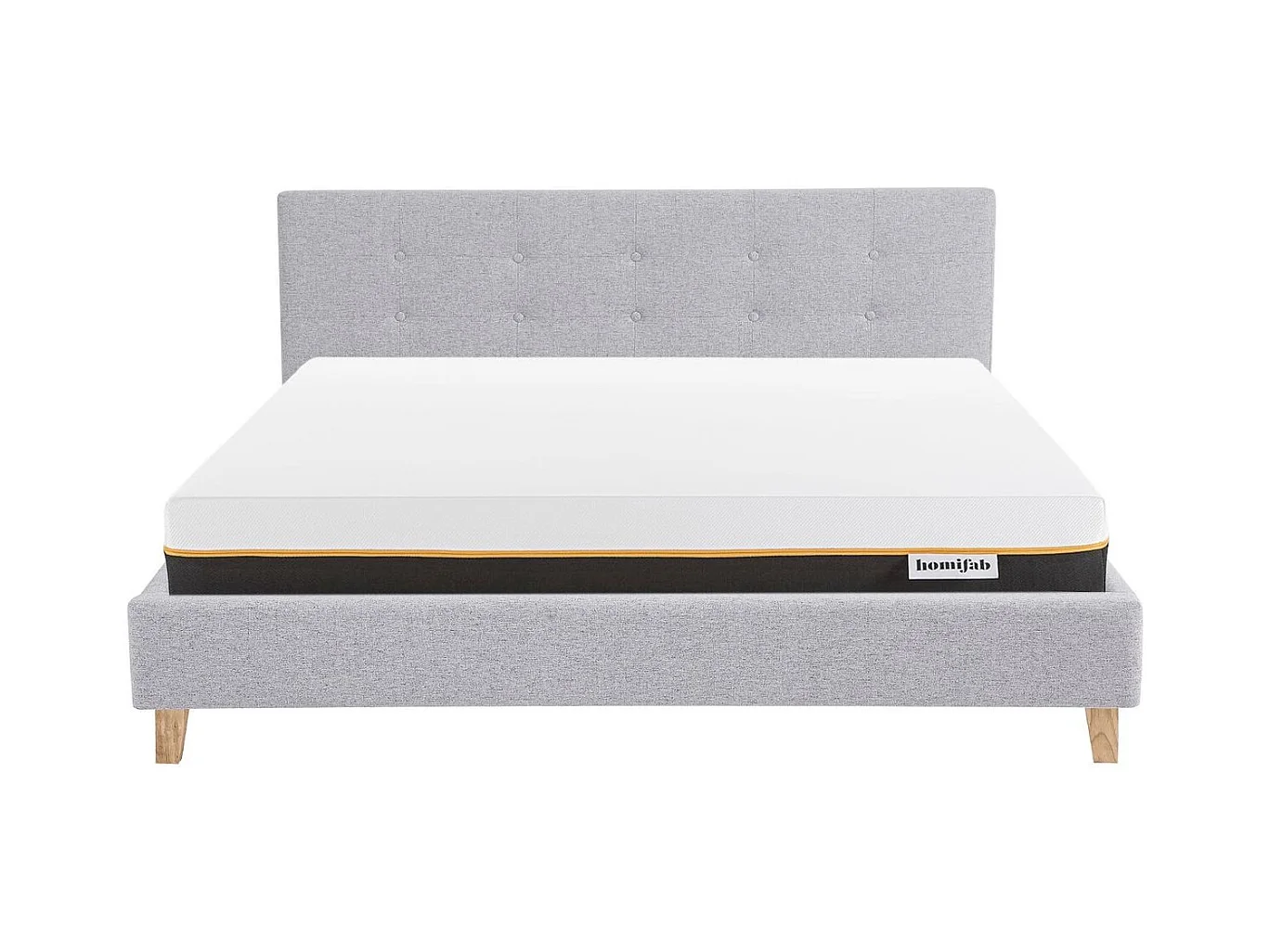 Ensemble Lit adulte 140x190cm avec tête de lit en tissu gris chiné - Milo + Matelas mémoire de forme - Dual Confort