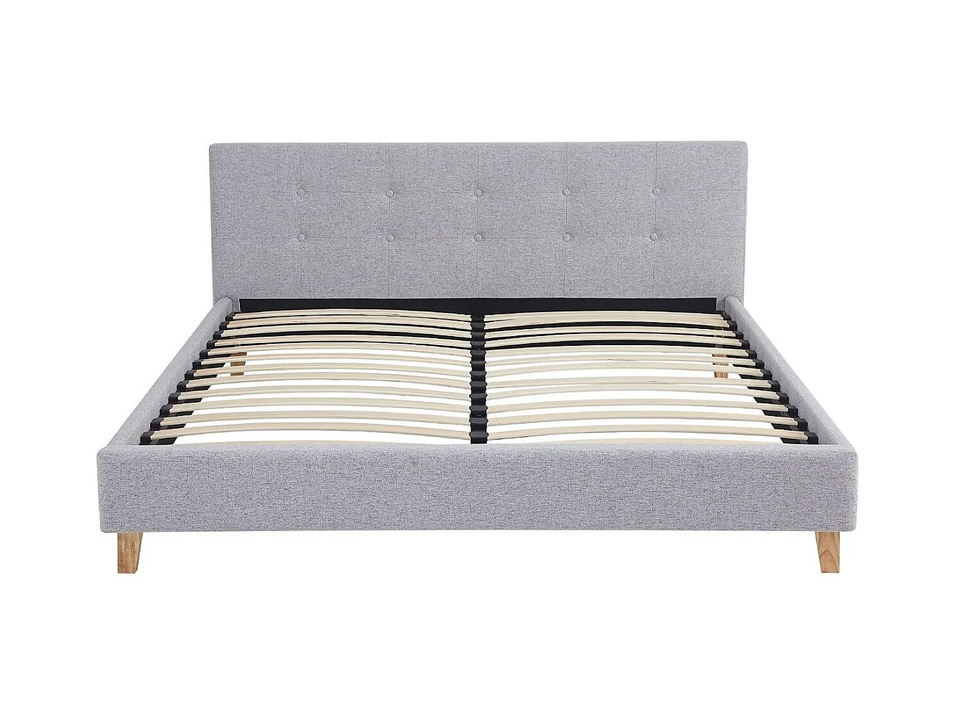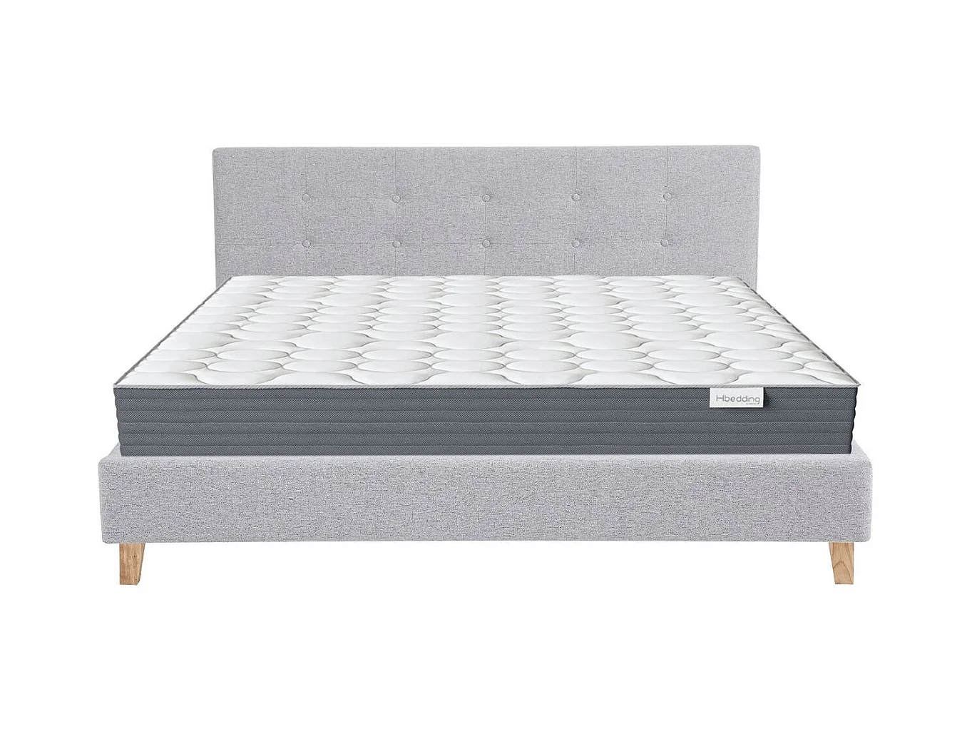 Ensemble Lit adulte 140x190cm avec tête de lit en tissu gris chiné - Milo + Matelas mémoire de forme - Memo HR