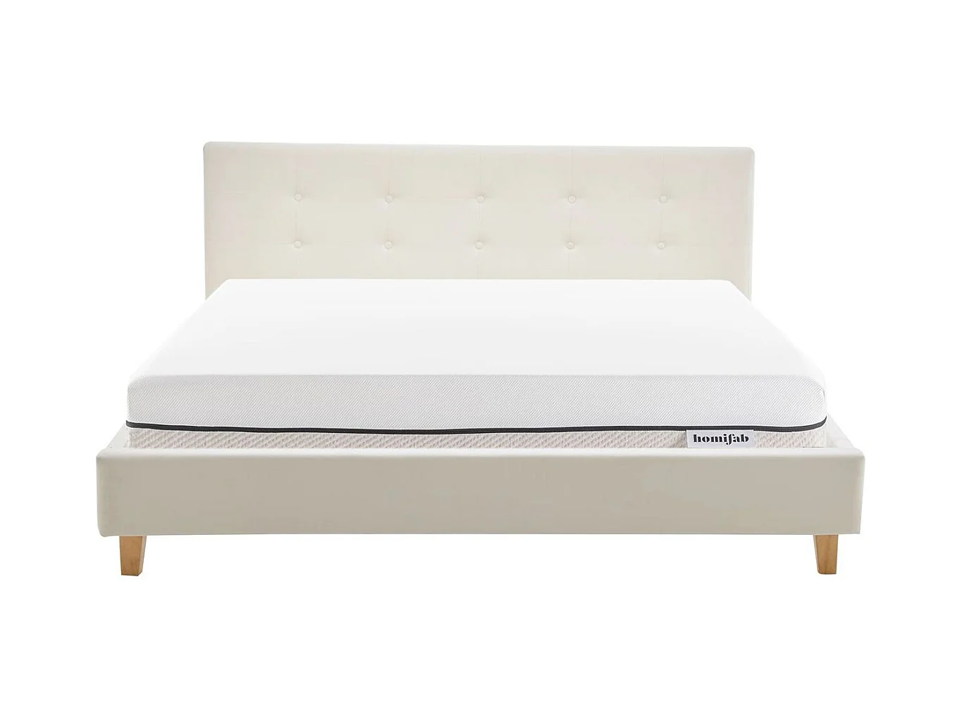 Ensemble Lit adulte 140x190cm avec tête de lit en velours beige - Milo + Matelas ressorts ensachés - Spring Elite