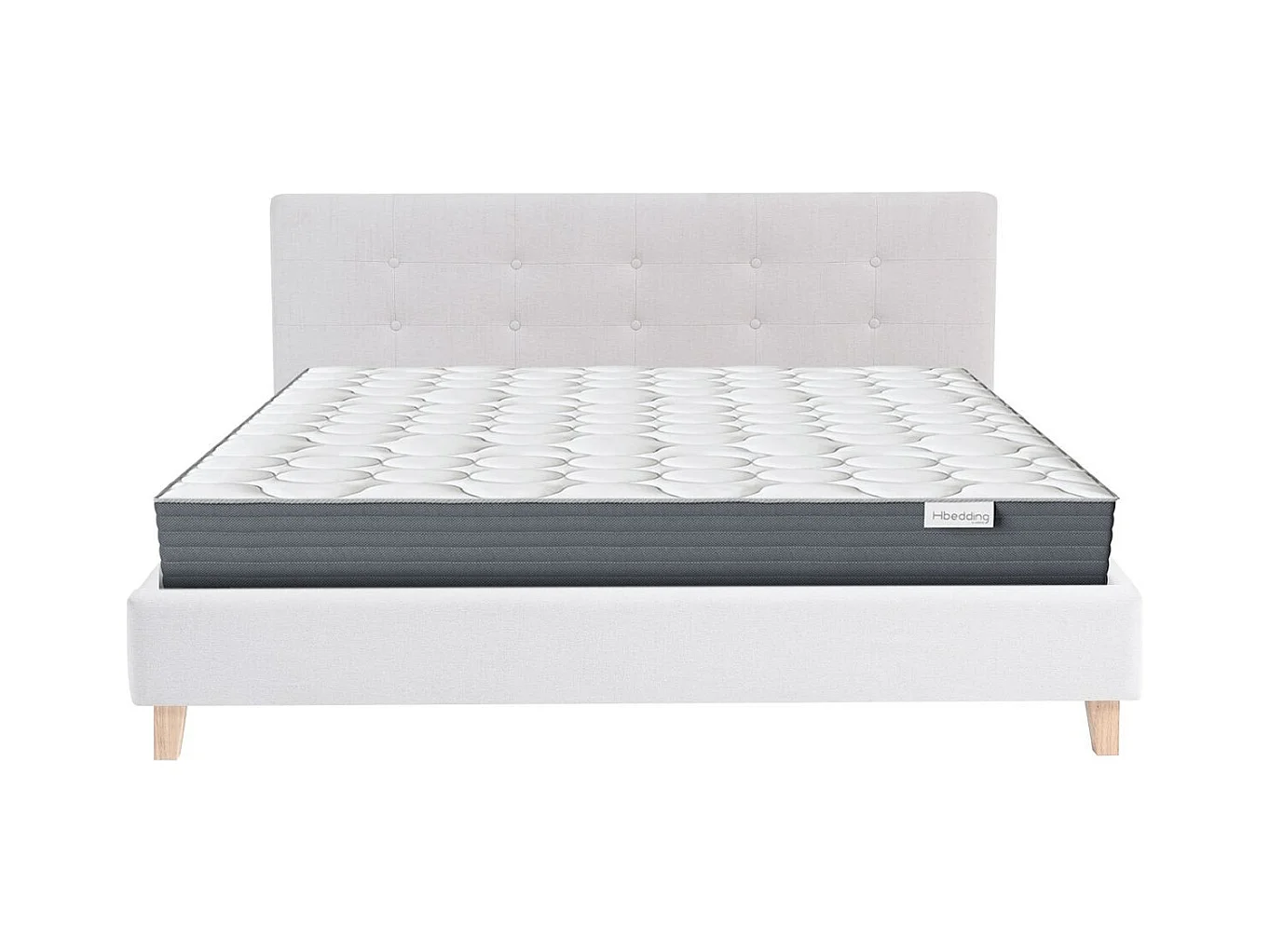 Ensemble Lit adulte 160x200cm avec tête de lit en tissu beige - Milo + Matelas mémoire de forme - Memo HR