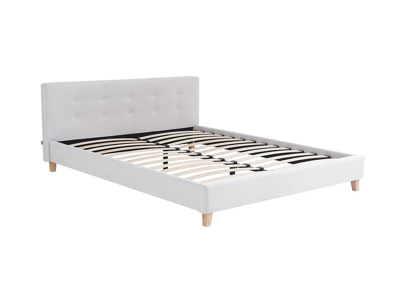 Ensemble Lit adulte 160x200cm avec tête de lit en tissu beige - Milo + Matelas ressorts ensachés - Spring Elite