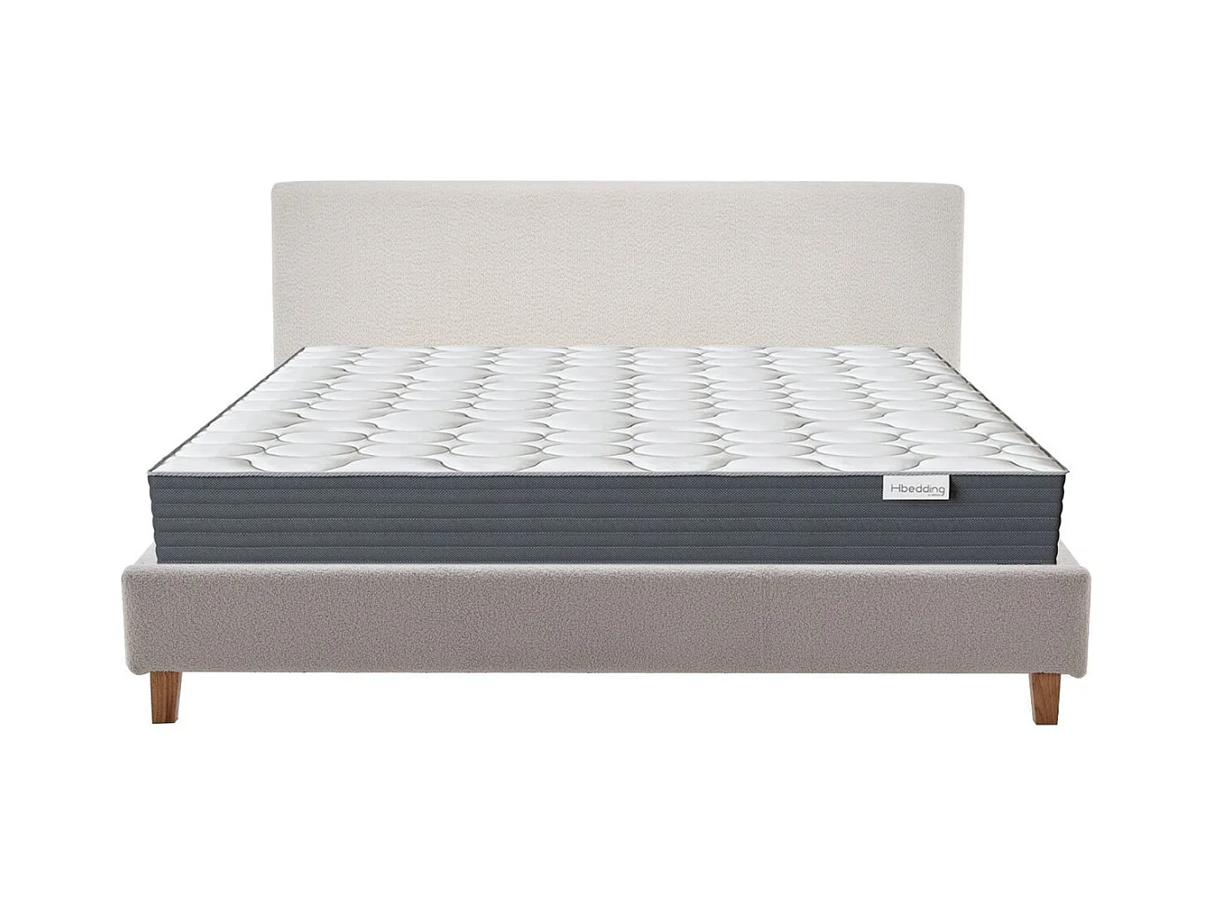 Ensemble Lit adulte 160x200cm avec tête de lit en tissu bouclé beige - Milo + Matelas mémoire de forme - Memo HR