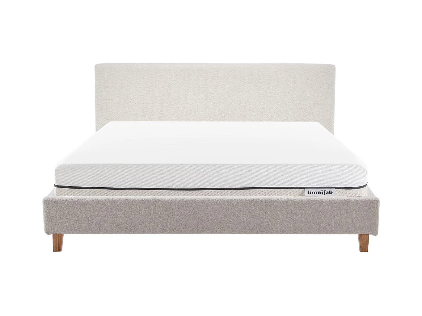 Ensemble Lit adulte 160x200cm avec tête de lit en tissu bouclé beige - Milo + Matelas ressorts ensachés - Spring Elite