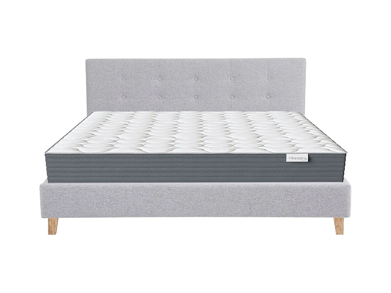 Ensemble Lit adulte 160x200cm avec tête de lit en tissu gris chiné - Milo + Matelas mémoire de forme - Memo HR