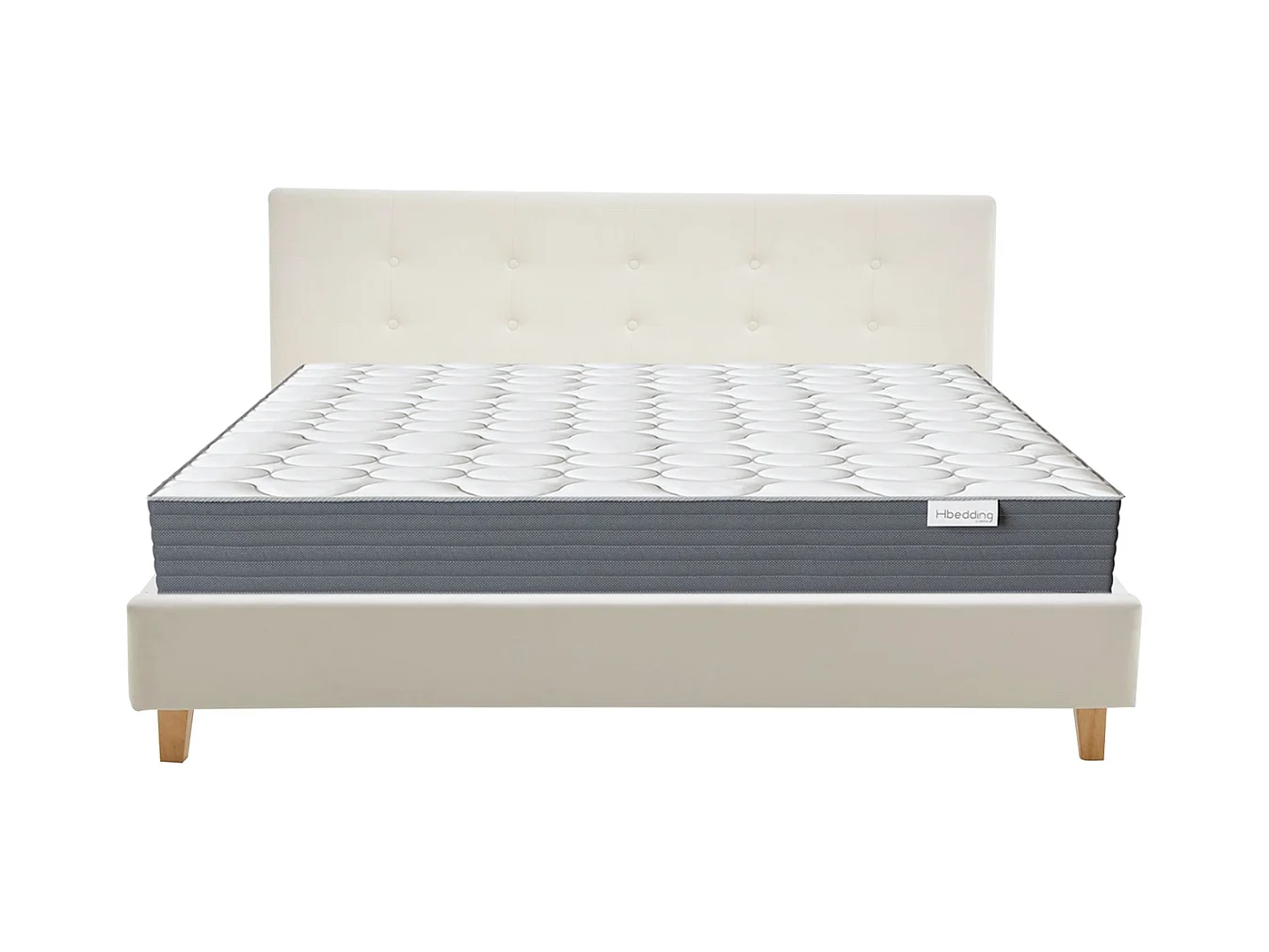 Ensemble Lit adulte 160x200cm avec tête de lit en velours beige - Milo + Matelas mémoire de forme - Memo HR