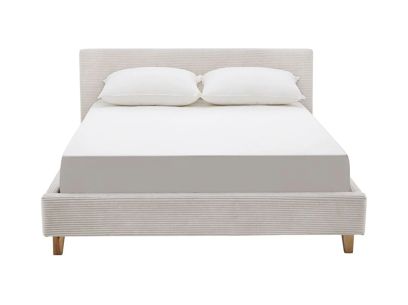 Ensemble Lit adulte 160x200cm avec tête de lit en velours côtelé beige - Milo + Matelas ressorts ensachés - Spring Elite