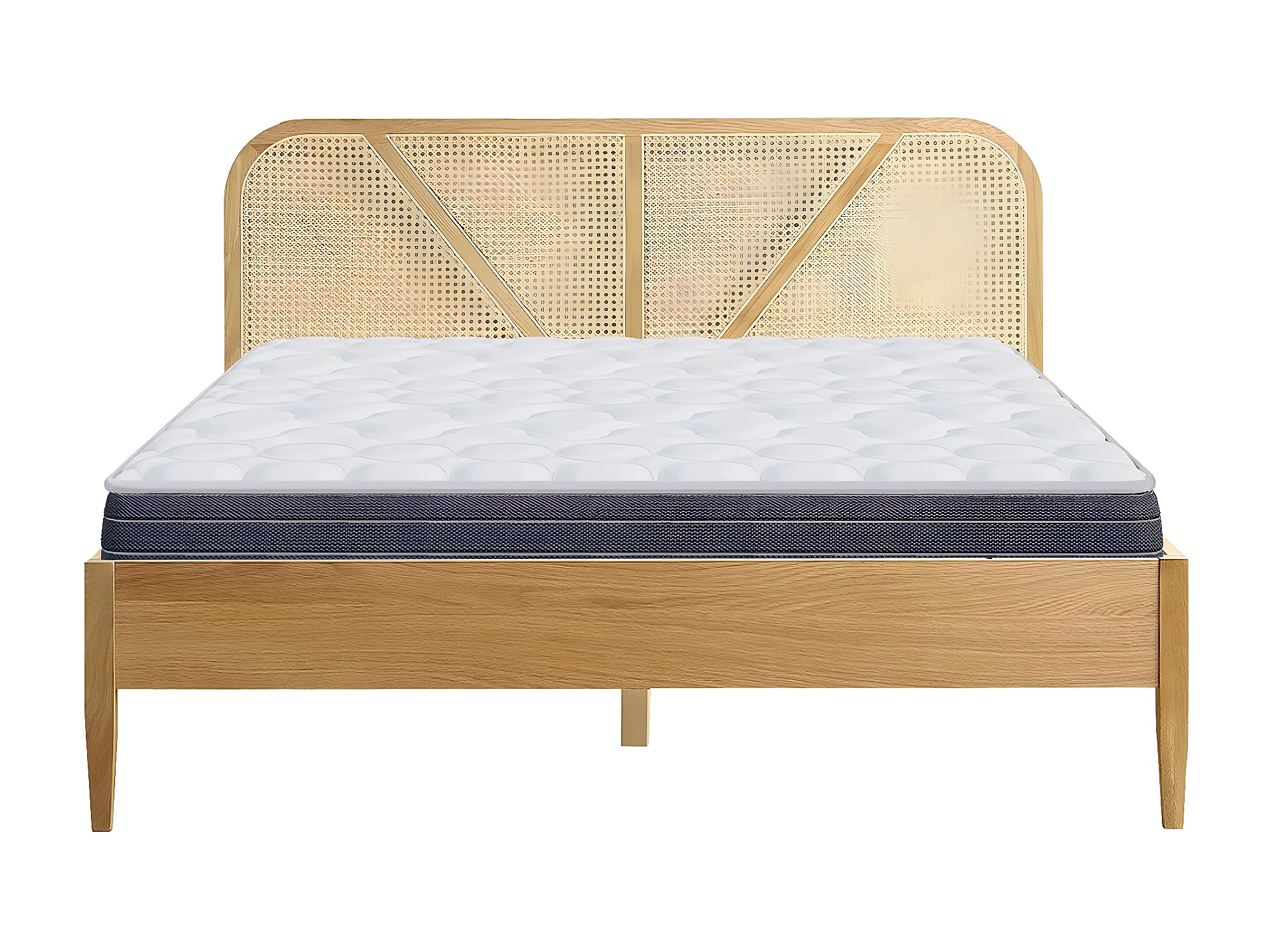 Ensemble lit adulte 180x200 cm en bois avec tête de lit en cannage Leonie + Matelas mémoire de forme Memo HR