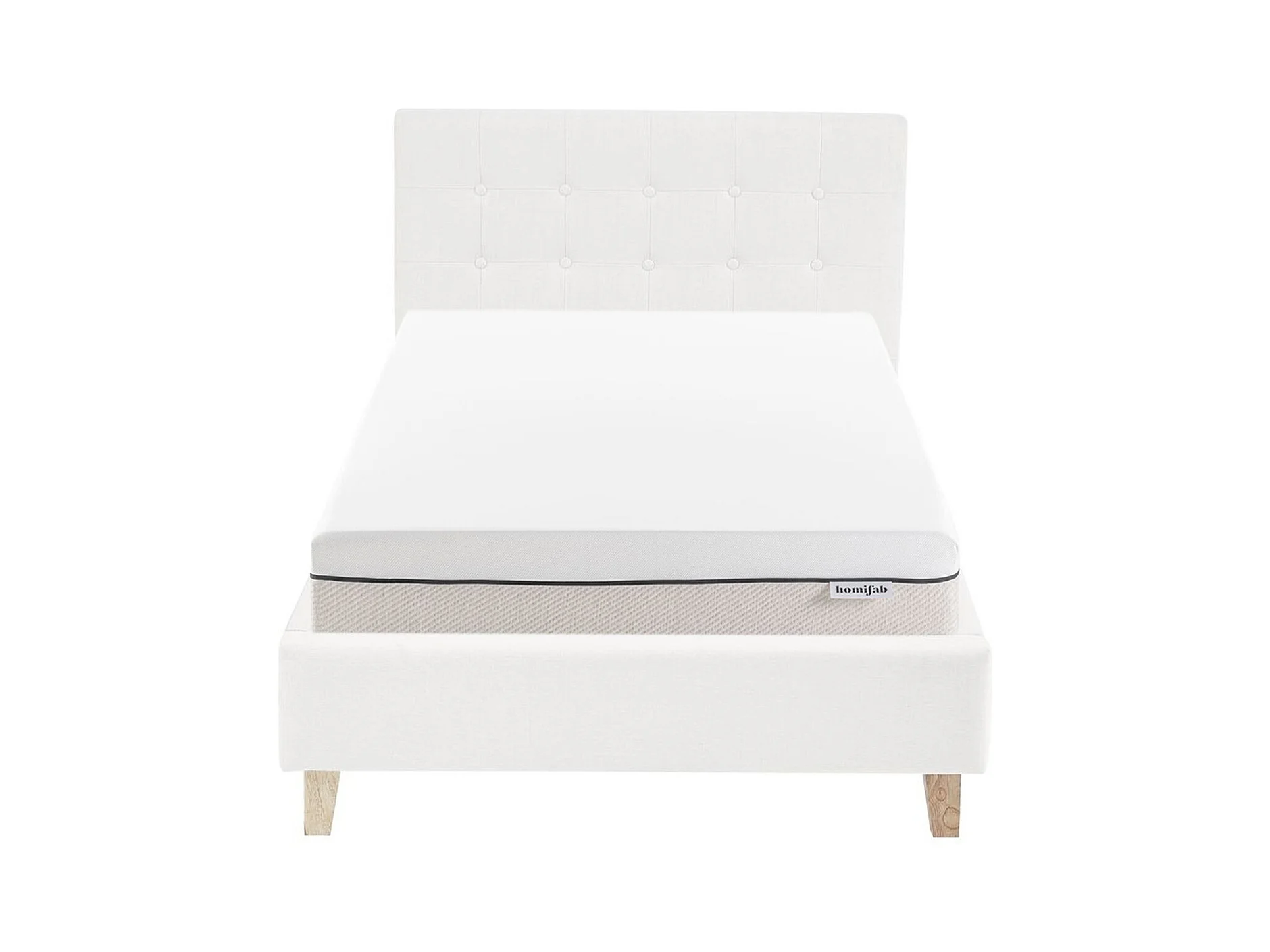 Ensemble Lit adulte 90x190cm avec tête de lit en tissu beige - Milo + Matelas ressorts ensachés - Spring Elite