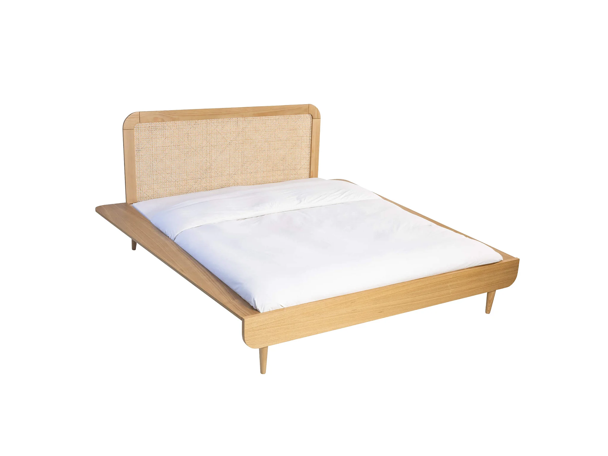 Ensemble lit en bois naturel 160x200cm + tête de lit 160cm en cannage SMOOTHCLOUD - LT38006