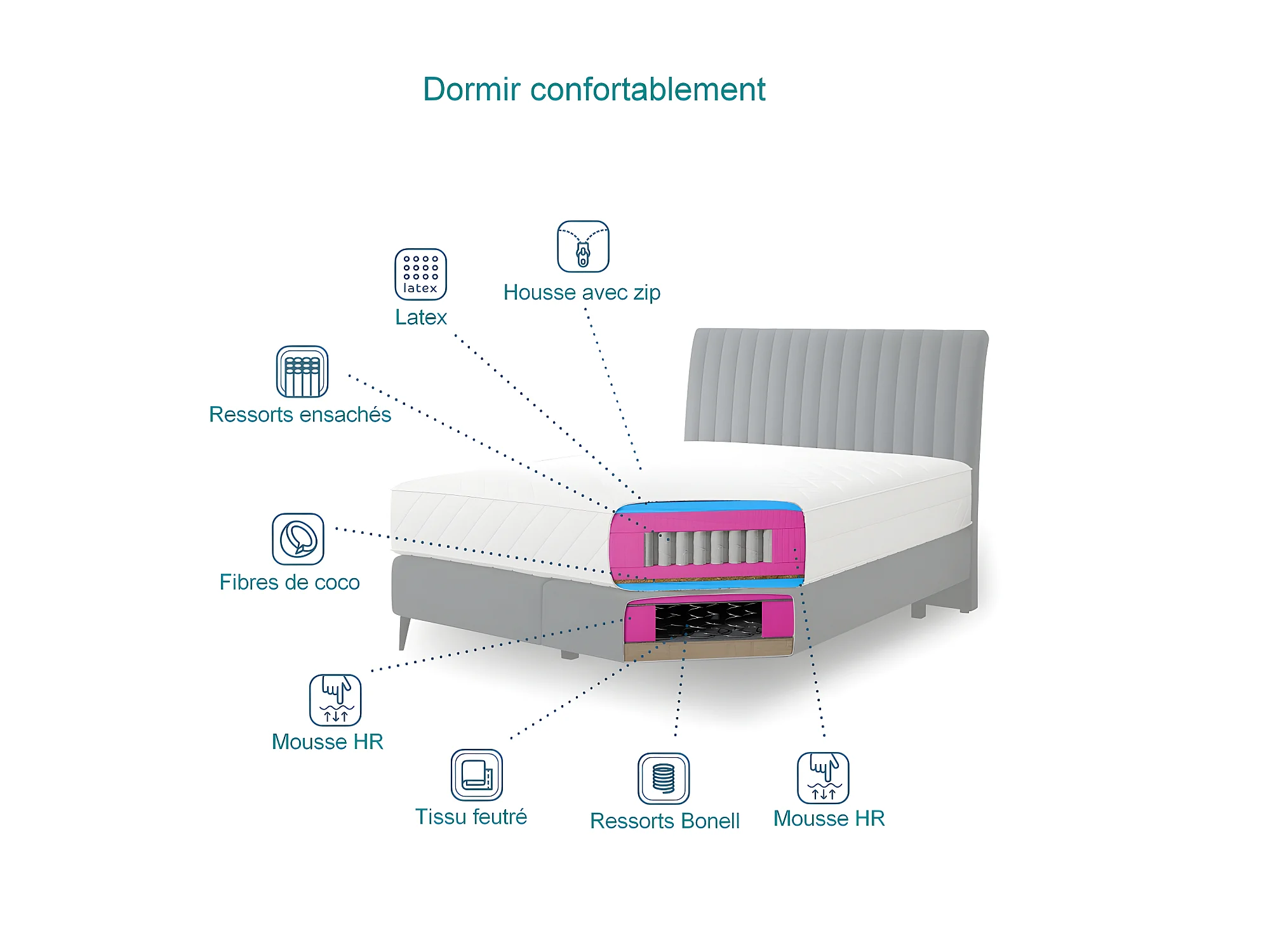 Ensemble lit + sommier + matelas BLASIO de VENESETTI - velours chocolat - 180x200 cm