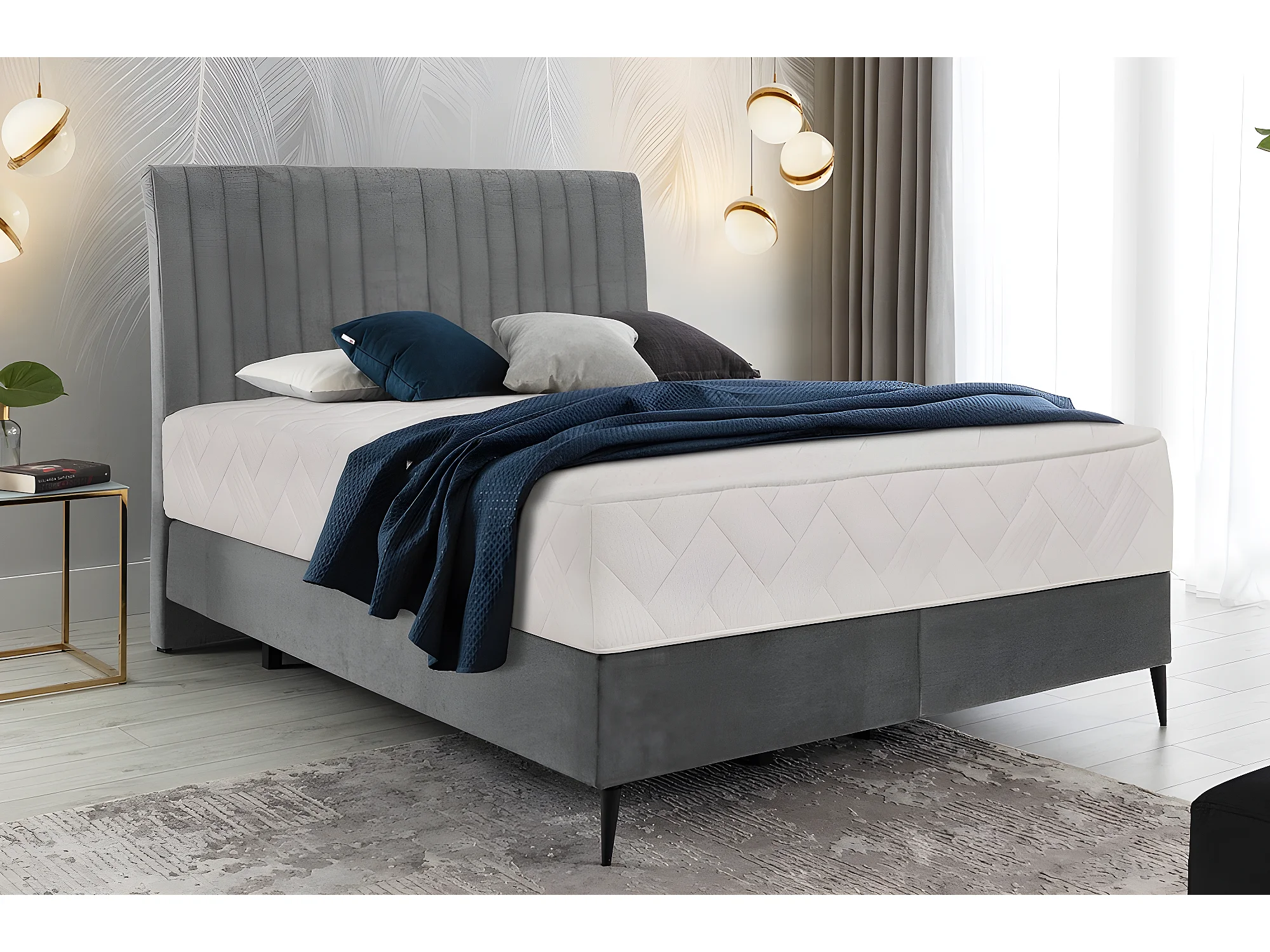 Ensemble lit + sommier + matelas en tissu velours gris - 140x200 cm - BLASIO de VENESETTI