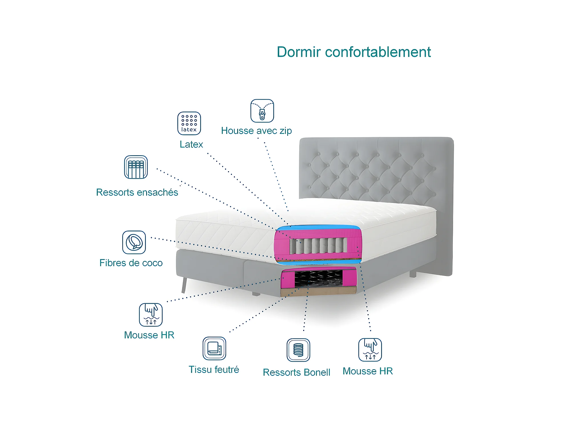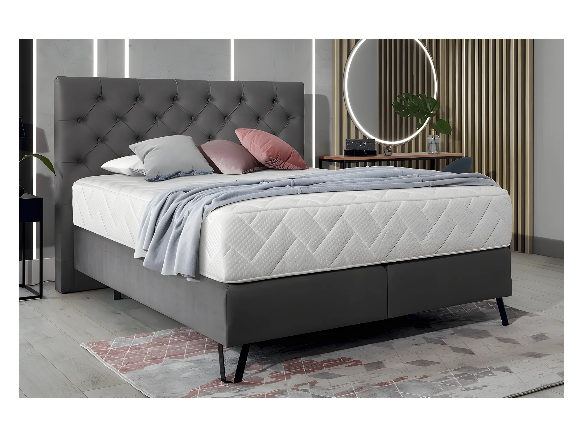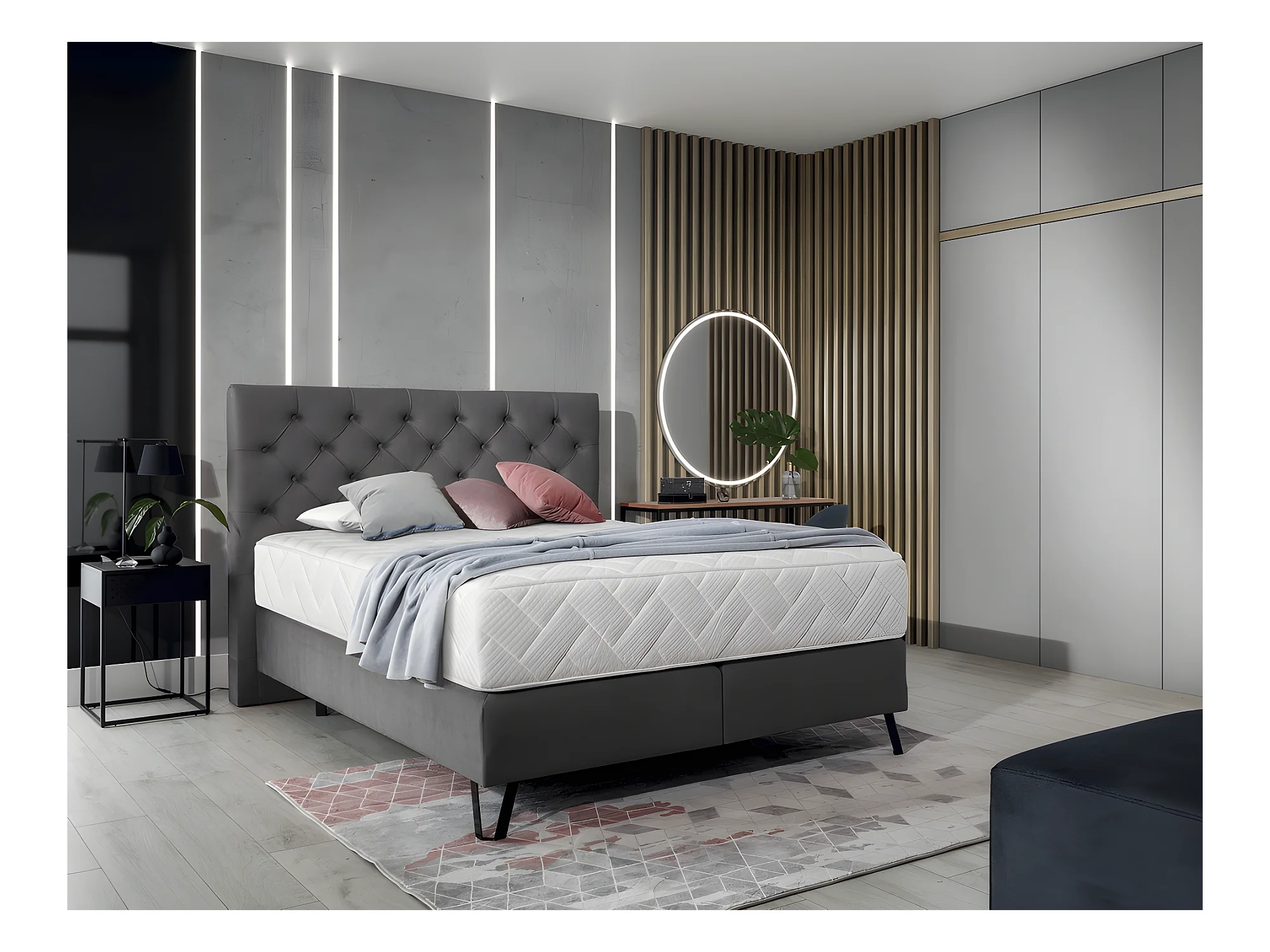 Ensemble lit + sommier + matelas - velours gris foncé - 140x200 cm - CORSICA