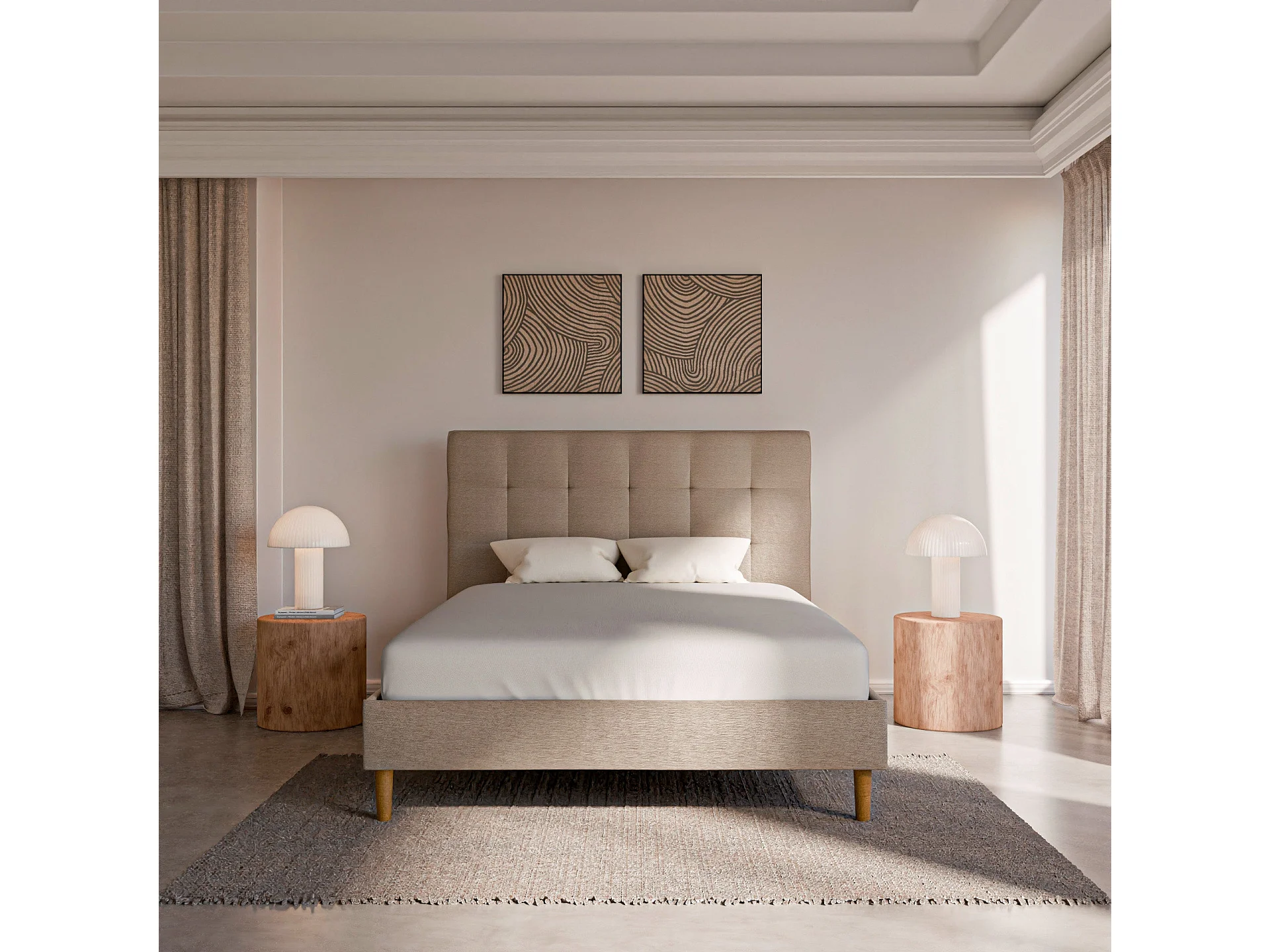 Sommier à lattes et tissu chiné beige 80x200 cm