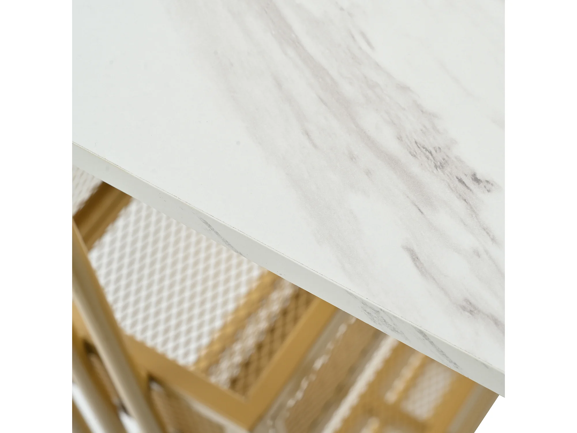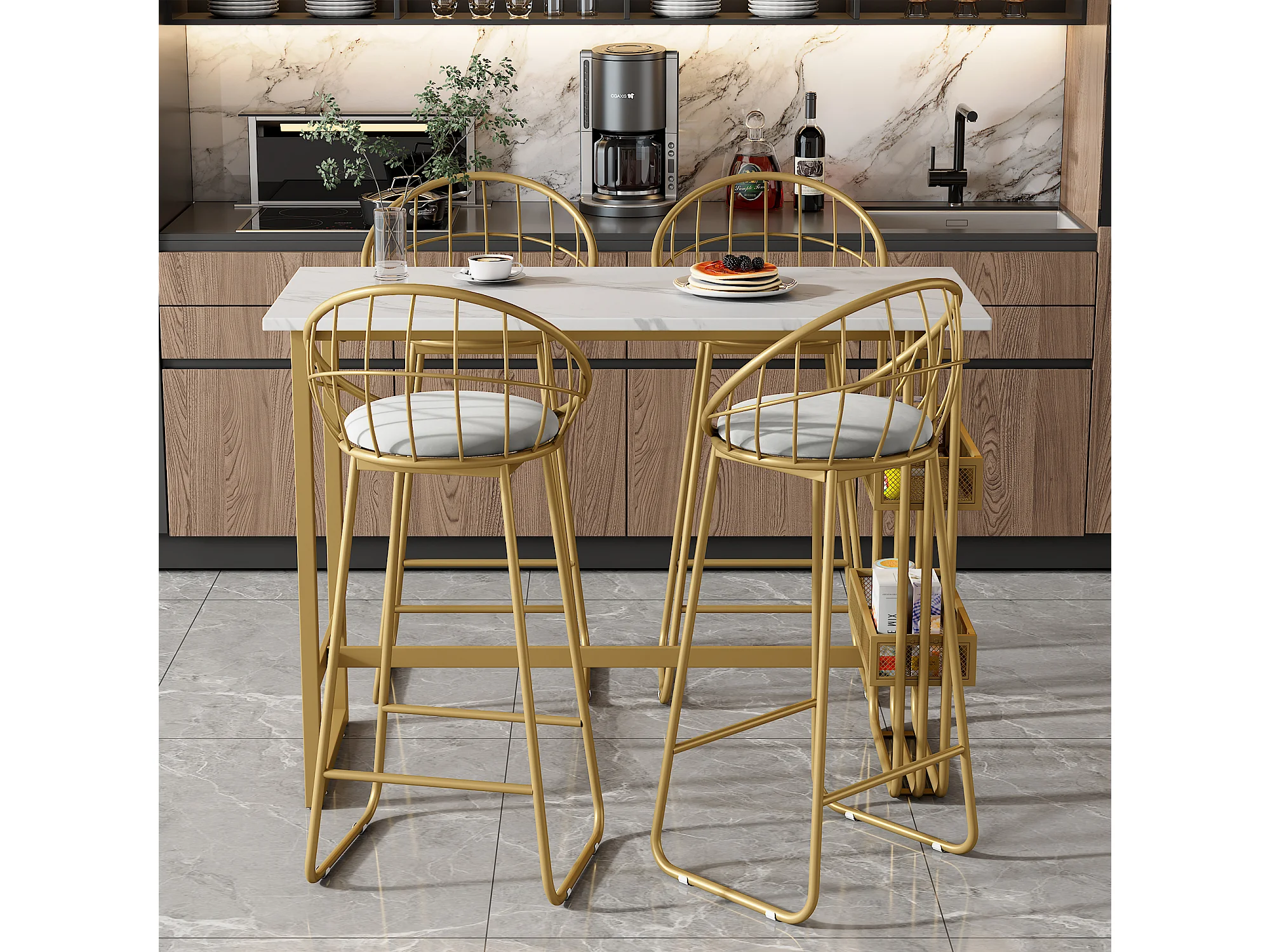 Ensemble “Mange Debout”:Table de bar et 4 Tabourets - structure en métal - Doré