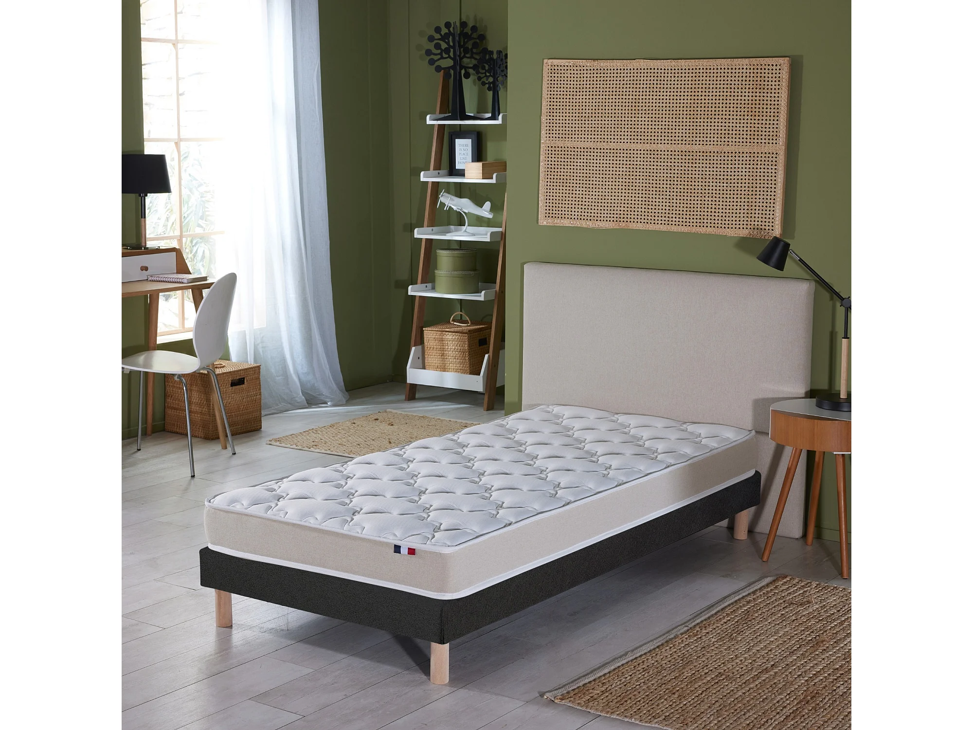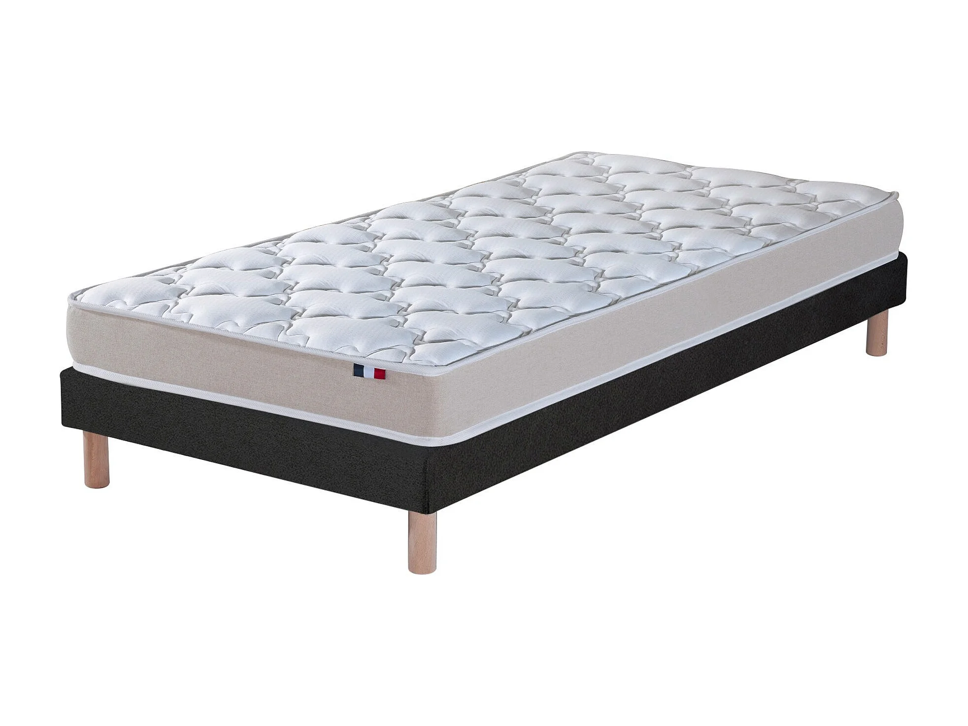 Ensemble matelas 100% latex 3 zones et sommier Essentiel - qualité française Dimensions - 90 x 190 cm, Sommier - Noir