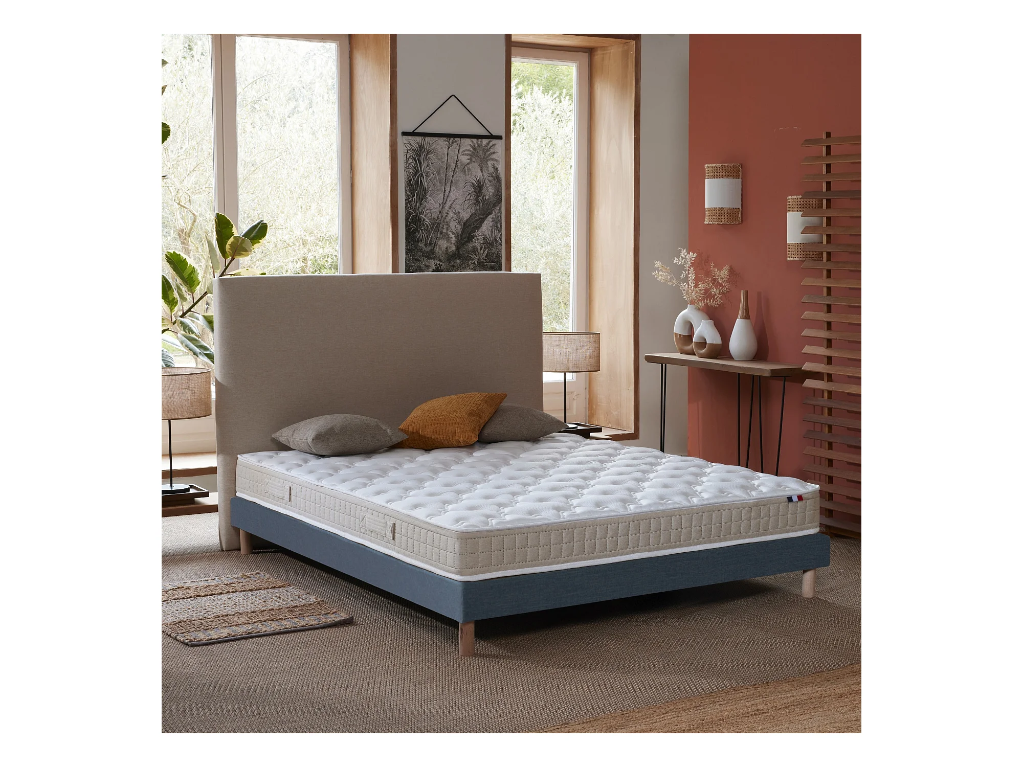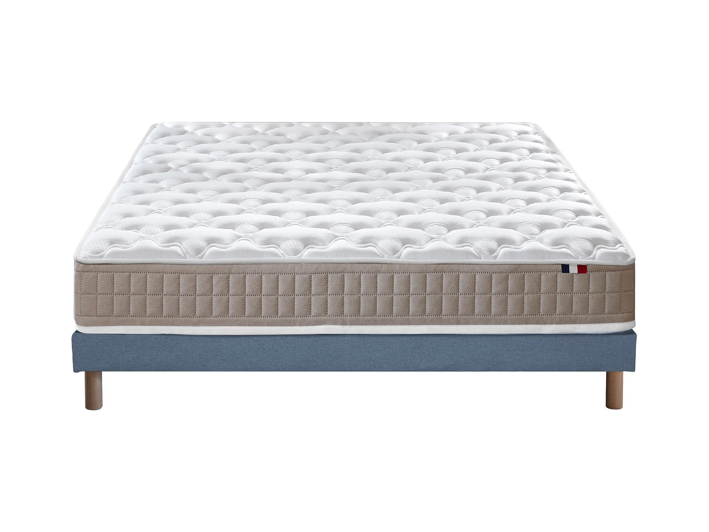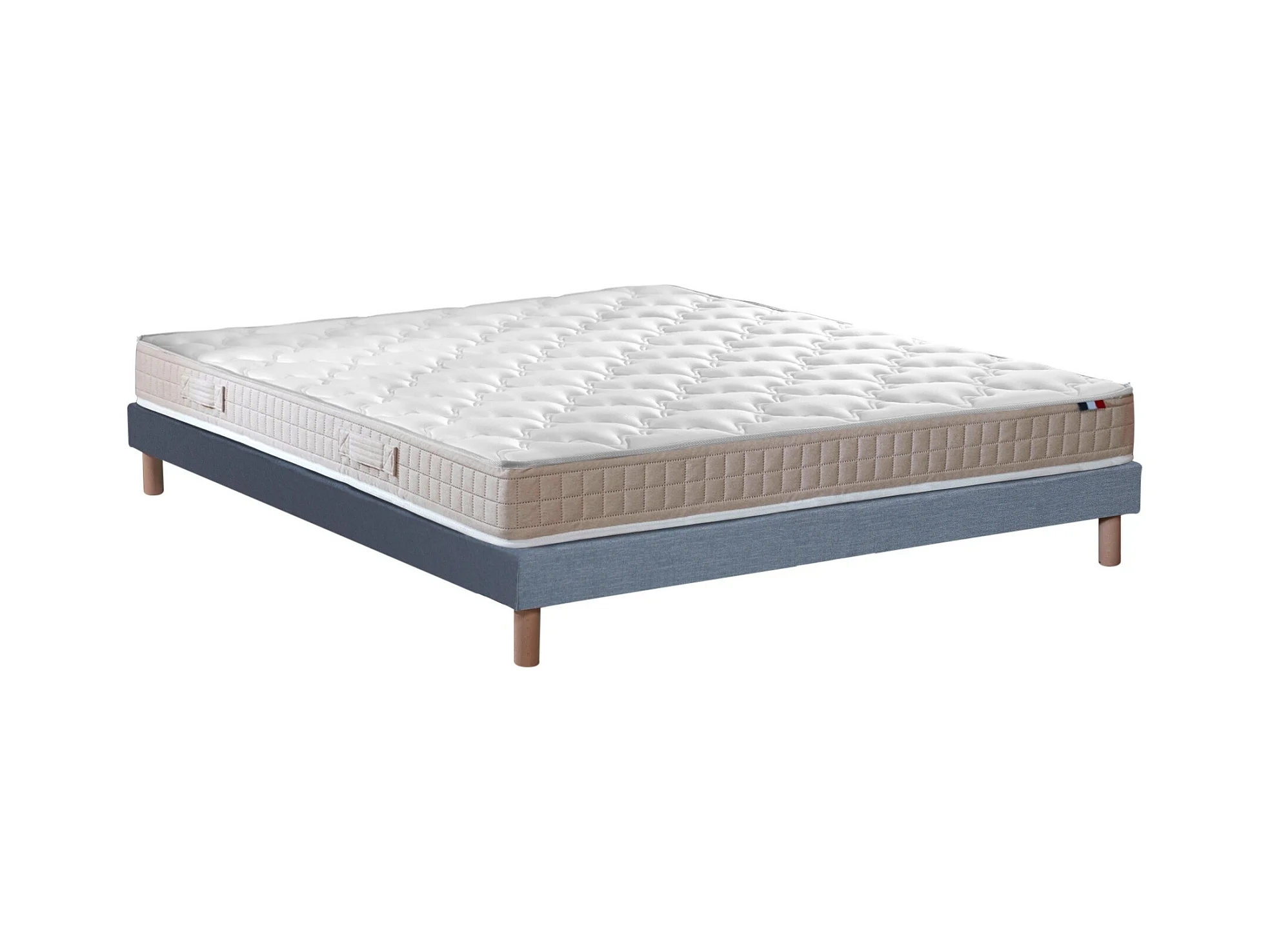 Ensemble matelas 100% latex 3 zones PURE avec sommier - confort français Dimensions - 140 x 190 cm, Sommier - Bleu denim