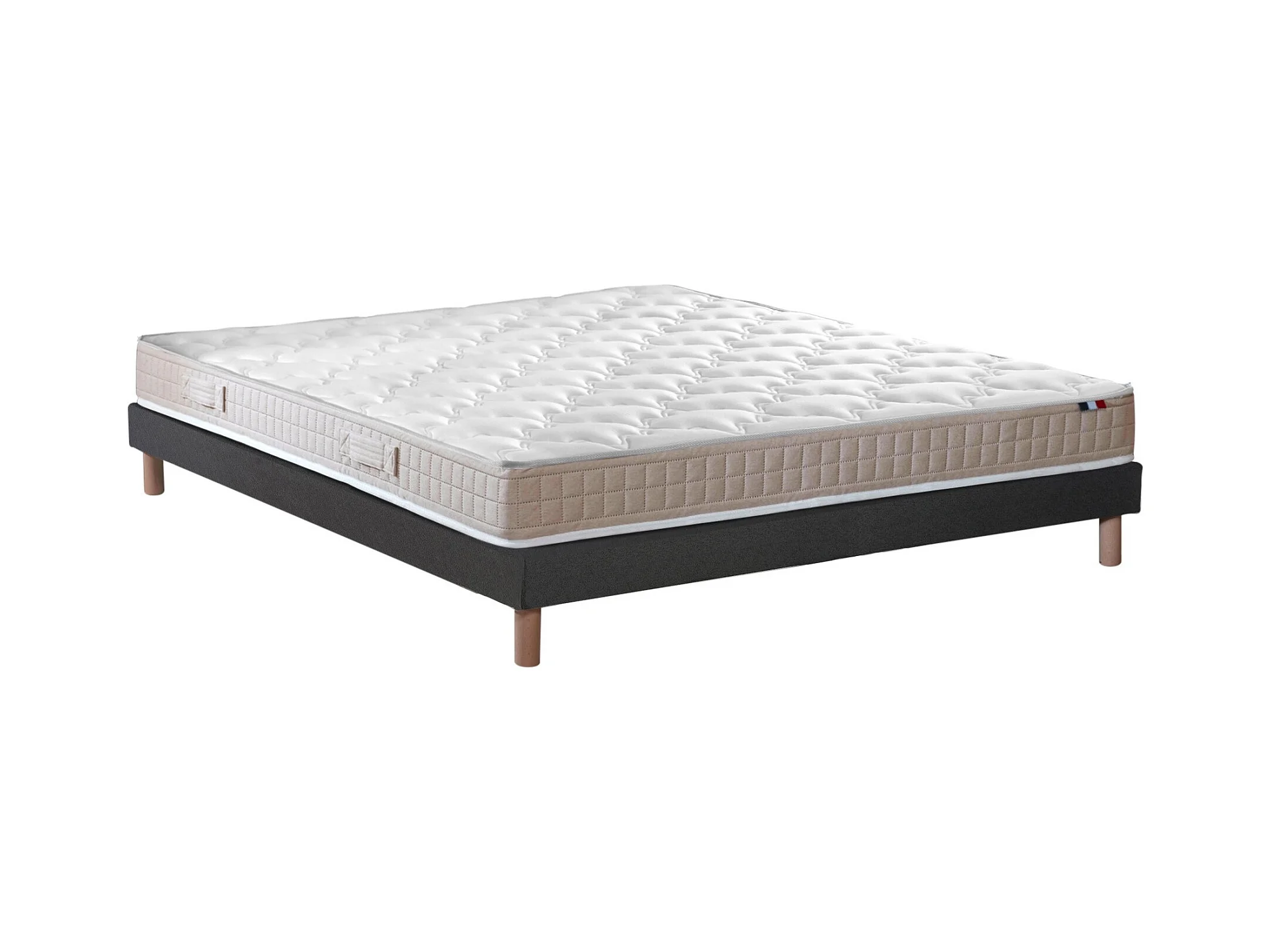 Ensemble matelas 100% latex 3 zones PURE avec sommier - confort français Dimensions - 140 x 190 cm, Sommier - Noir