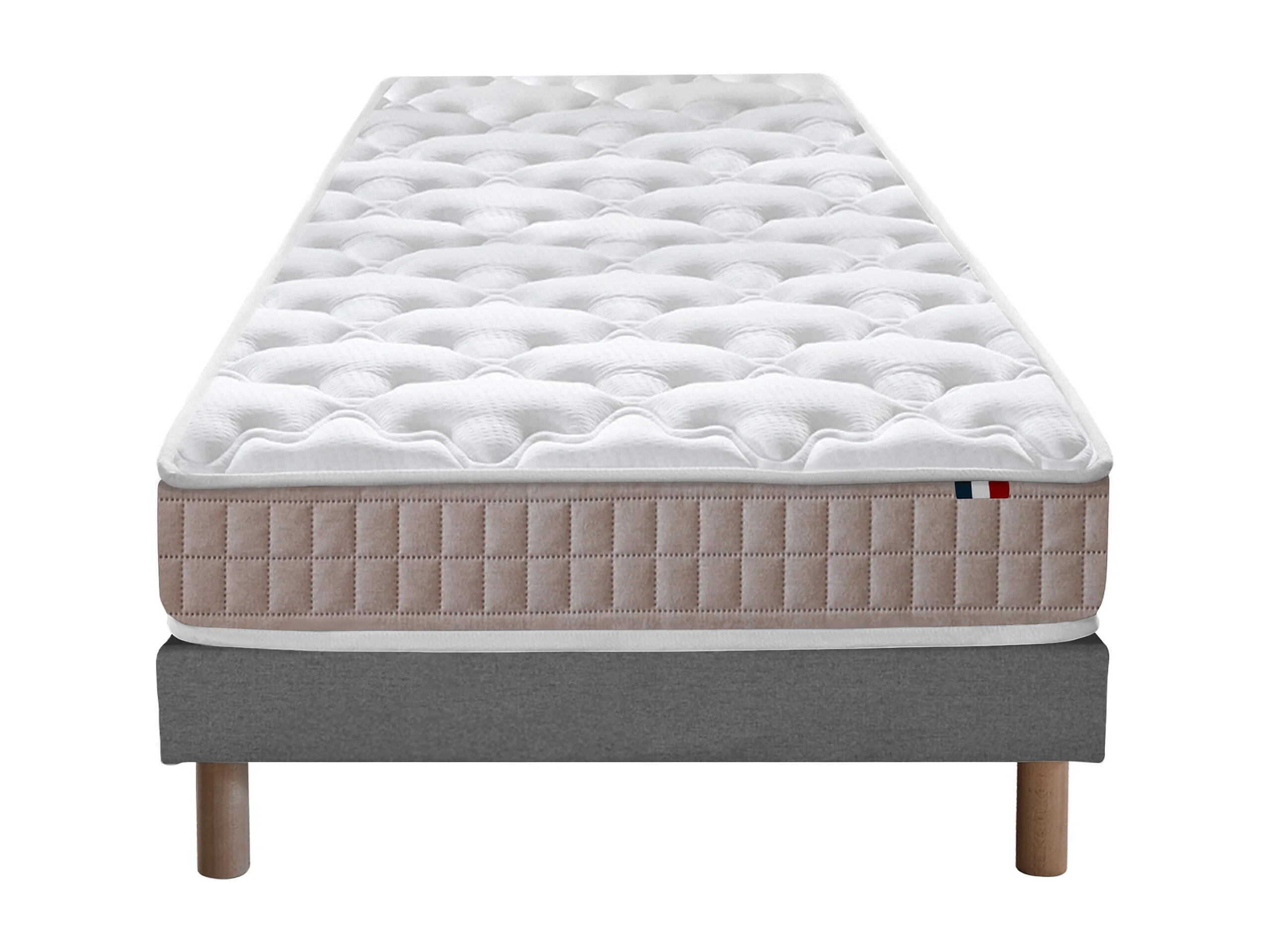 Ensemble matelas 100% latex 3 zones PURE avec sommier - confort français Dimensions - 90 x 190 cm, Sommier - Gris chiné