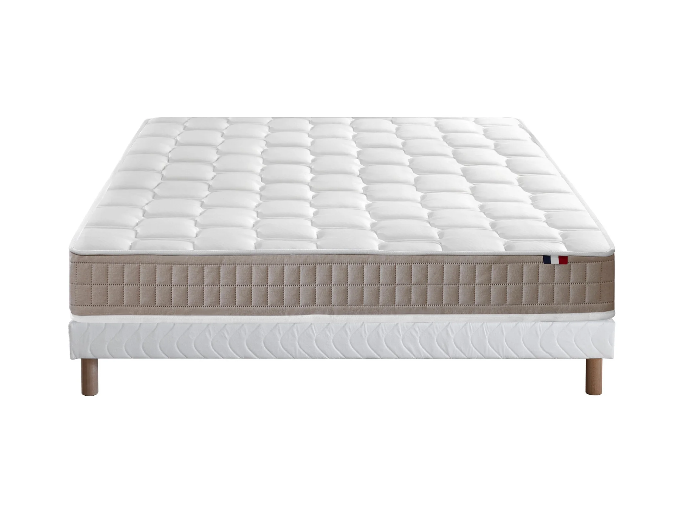 Ensemble Matelas 100% latex 5 zones ORIGINEL + Sommier - Spécial Dos Sensible - Fabriqué en France Dimensions - 140 x 190 cm, Sommier - Blanc