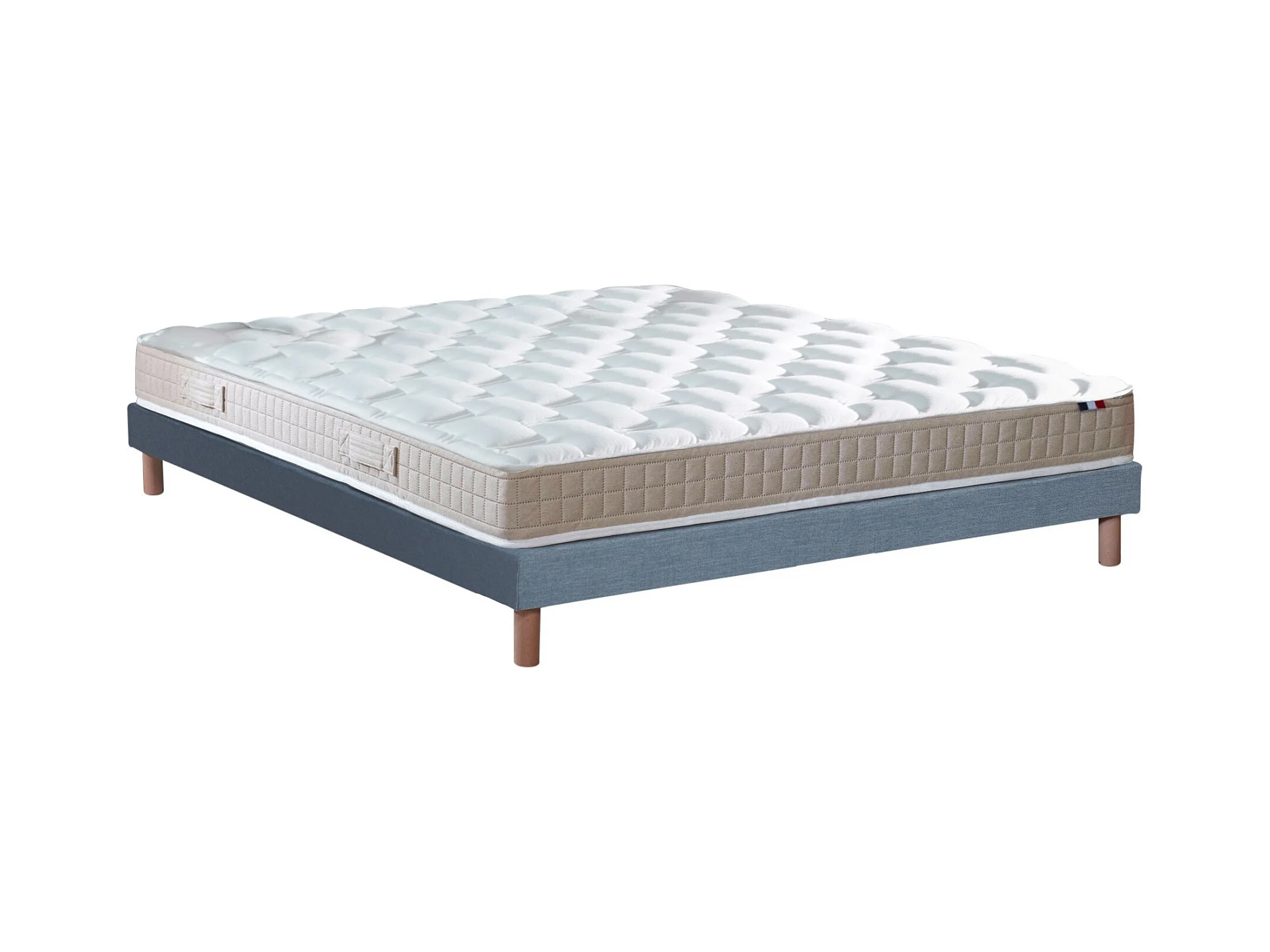 Ensemble Matelas 100% latex 5 zones ORIGINEL + Sommier - Spécial Dos Sensible - Fabriqué en France Dimensions - 140 x 190 cm, Sommier - Bleu denim
