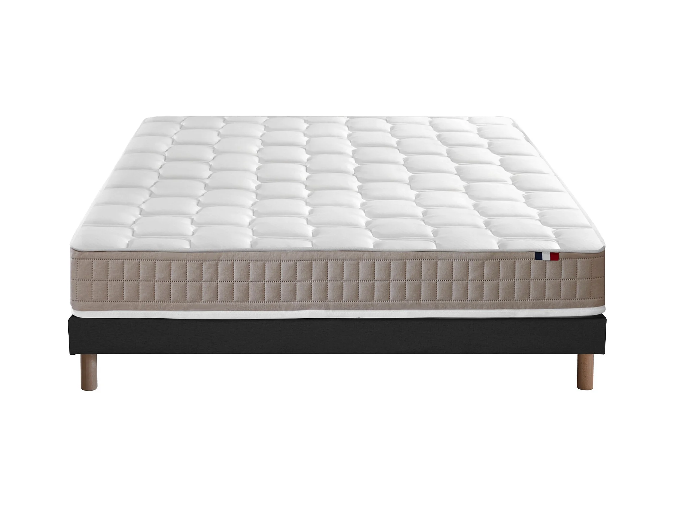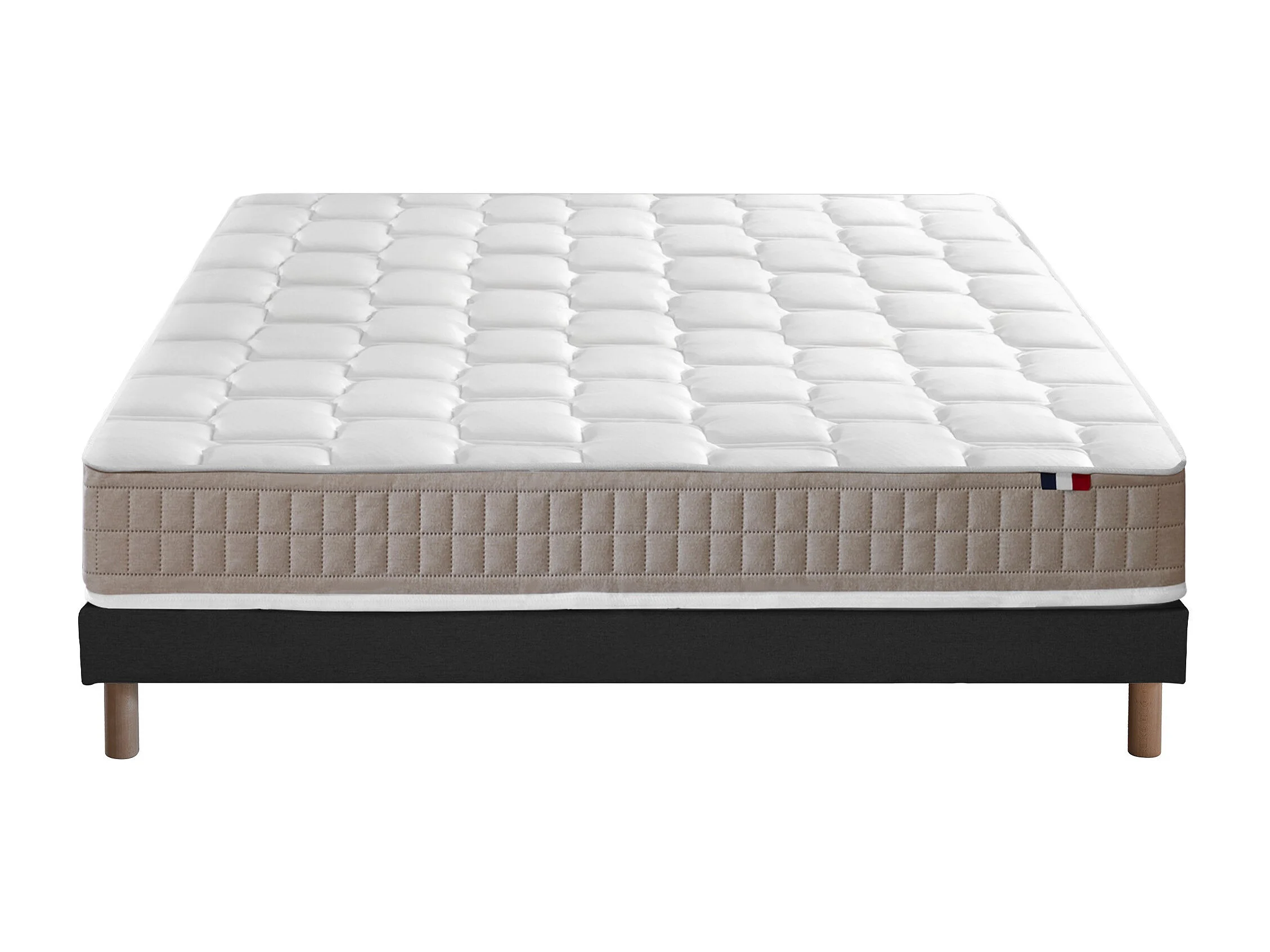 Ensemble Matelas 100% latex 5 zones ORIGINEL + Sommier - Spécial Dos Sensible - Fabriqué en France Dimensions - 140 x 190 cm, Sommier - Noir