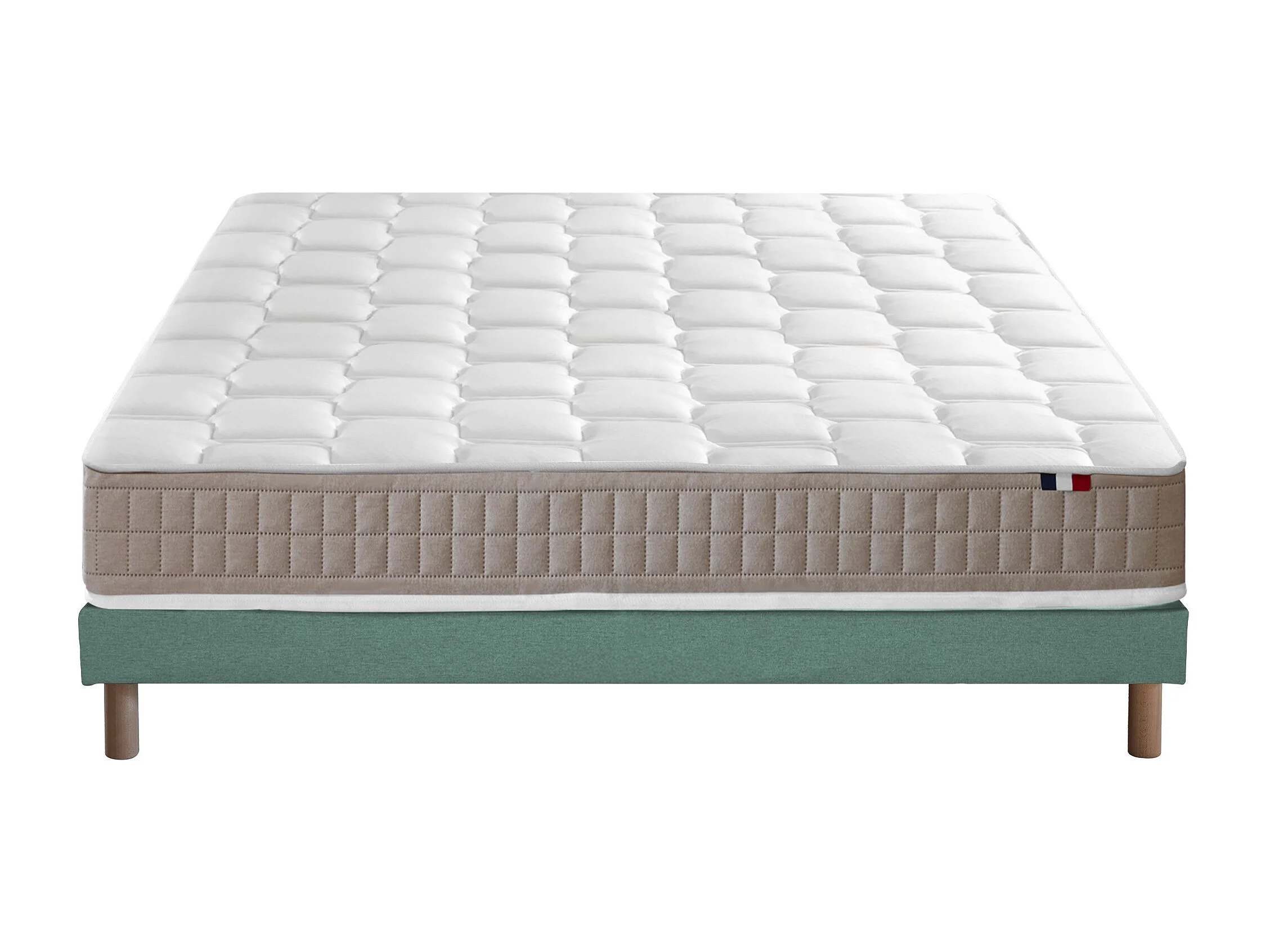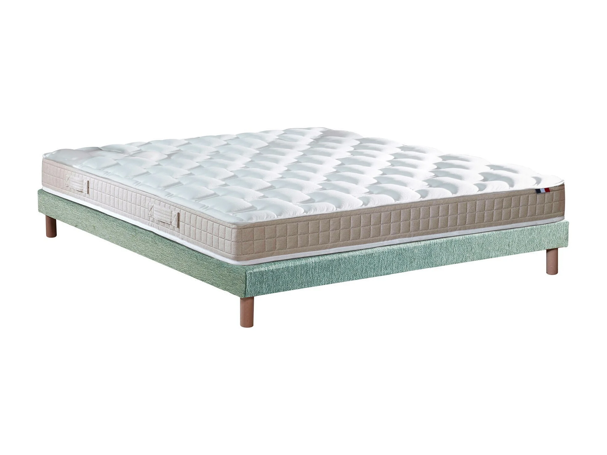 Ensemble Matelas 100% latex 5 zones ORIGINEL + Sommier - Spécial Dos Sensible - Fabriqué en France Dimensions - 140 x 190 cm, Sommier - Vert celadon