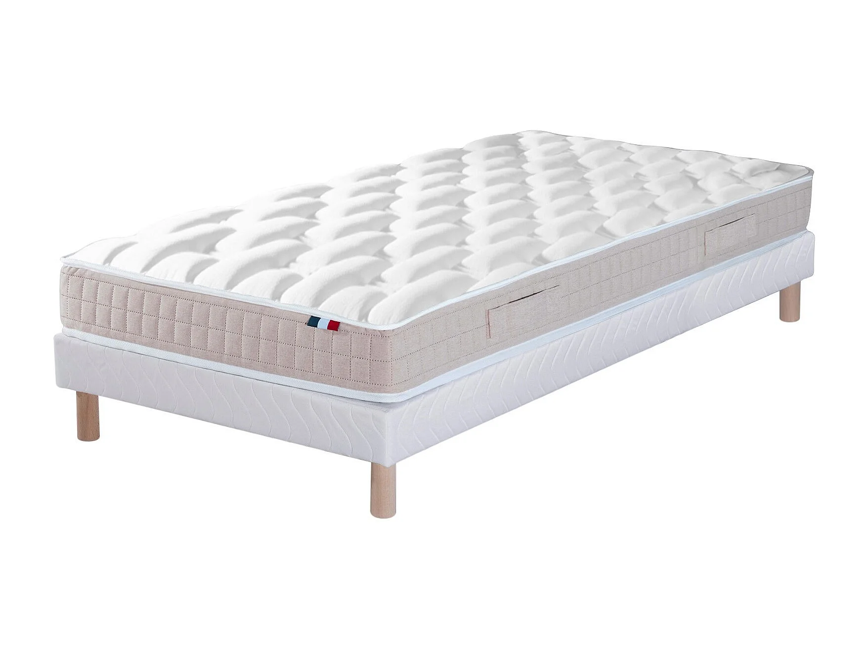 Ensemble Matelas 100% latex 5 zones ORIGINEL + Sommier - Spécial Dos Sensible - Fabriqué en France Dimensions - 80 x 200 cm, Sommier - Blanc