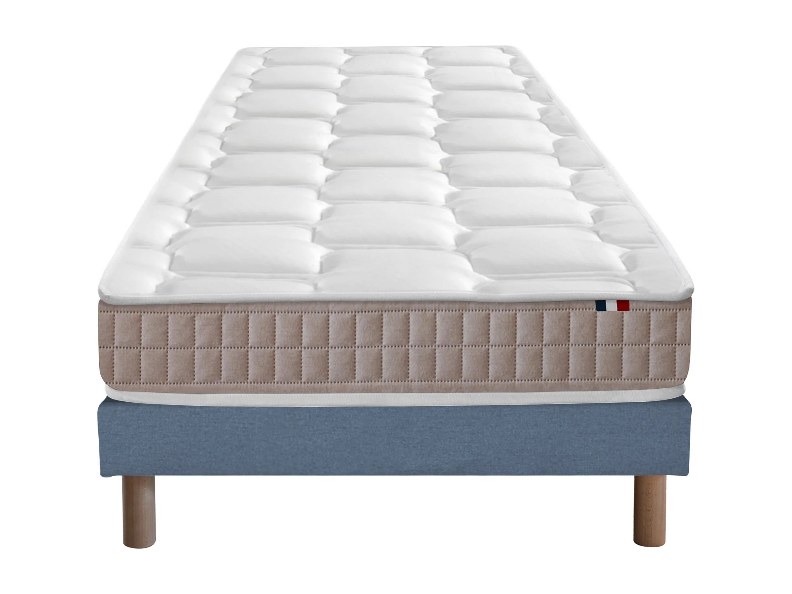 Ensemble Matelas 100% latex 5 zones ORIGINEL + Sommier - Spécial Dos Sensible - Fabriqué en France Dimensions - 80 x 200 cm, Sommier - Bleu denim