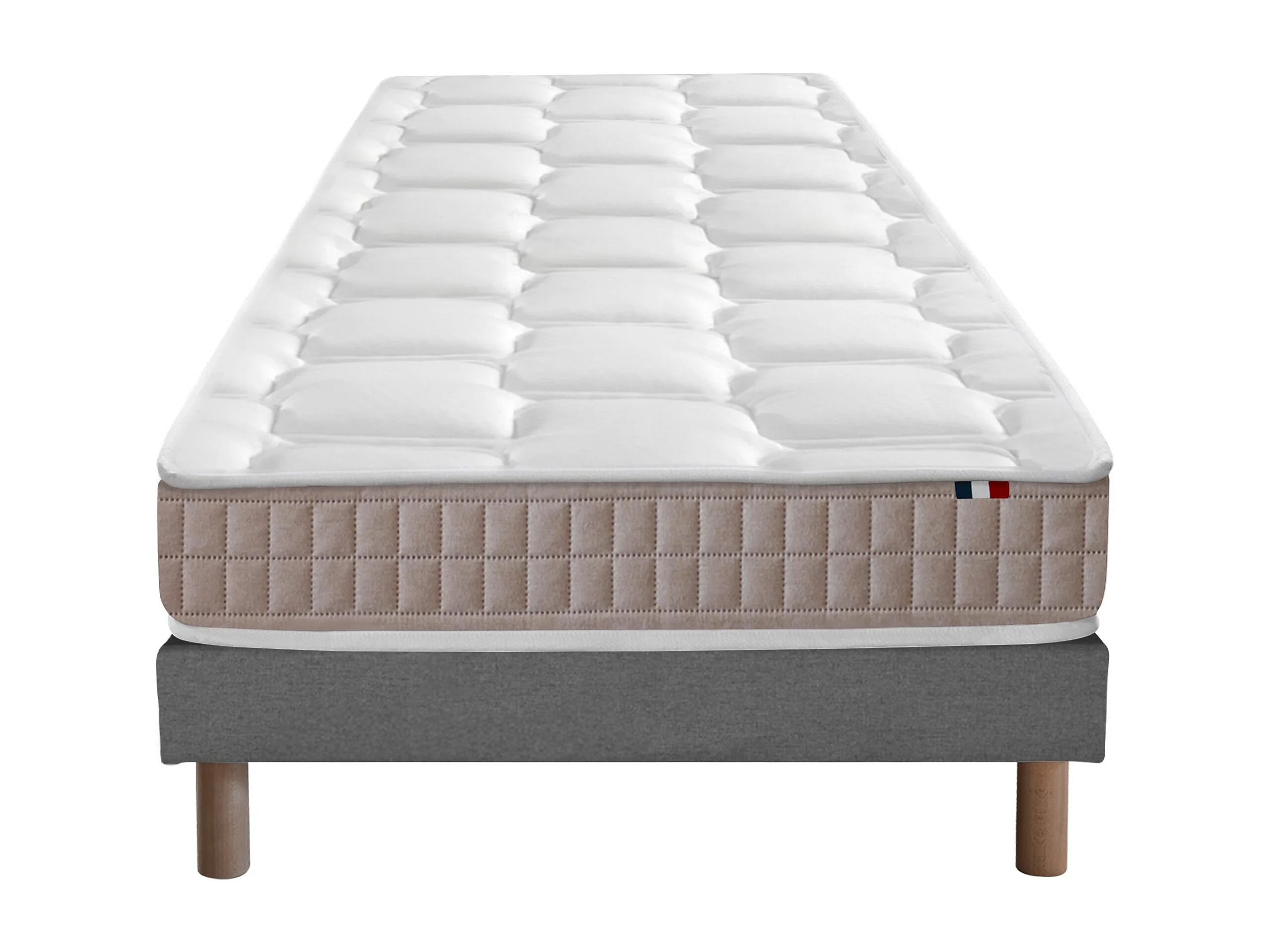 Ensemble Matelas 100% latex 5 zones ORIGINEL + Sommier - Spécial Dos Sensible - Fabriqué en France Dimensions - 90 x 200 cm, Sommier - Gris chiné