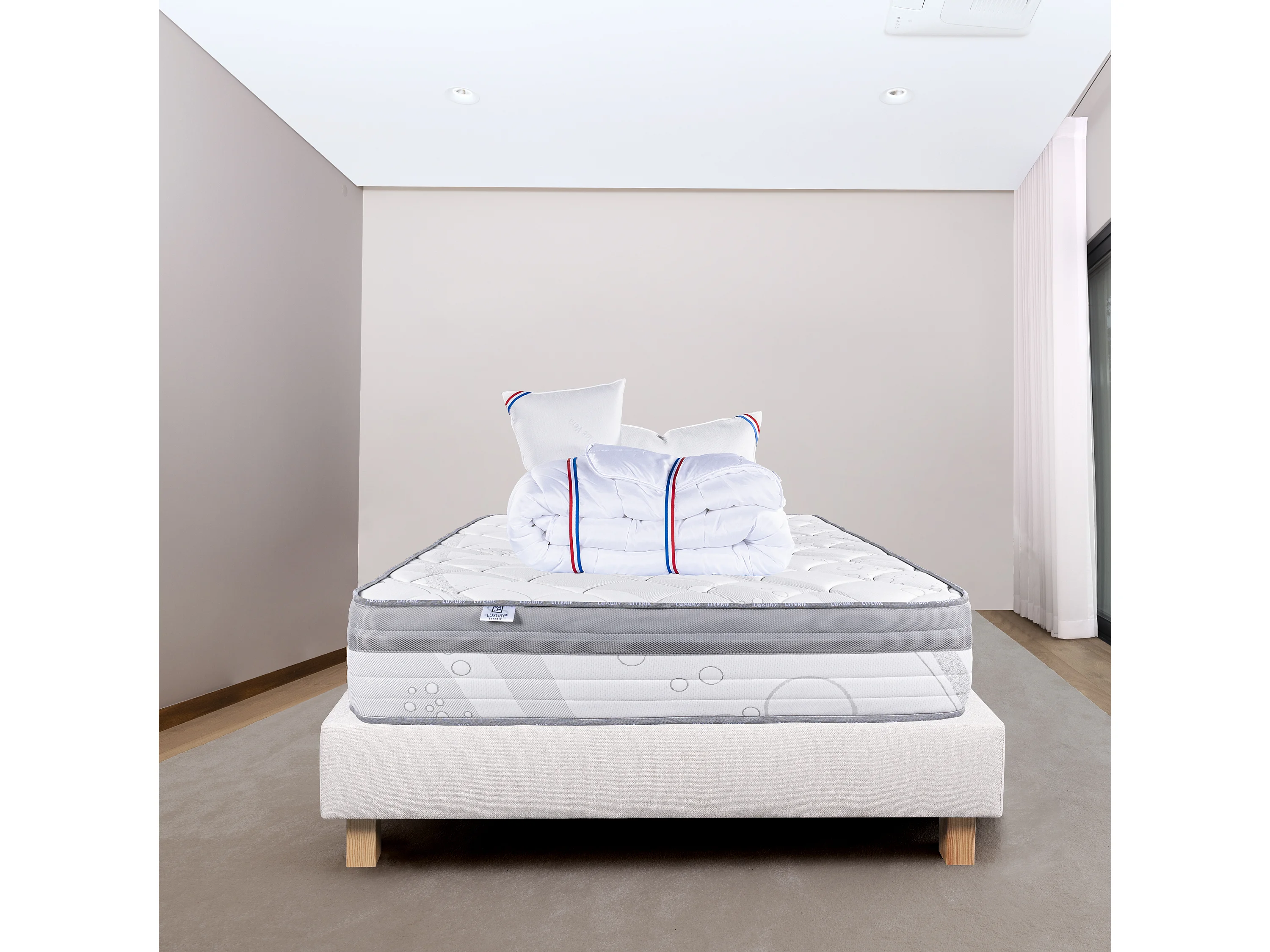 Ensemble Matelas 140x200 cm, ViscoPlus, 26 cm + sommier beige + 2 oreillers + couette