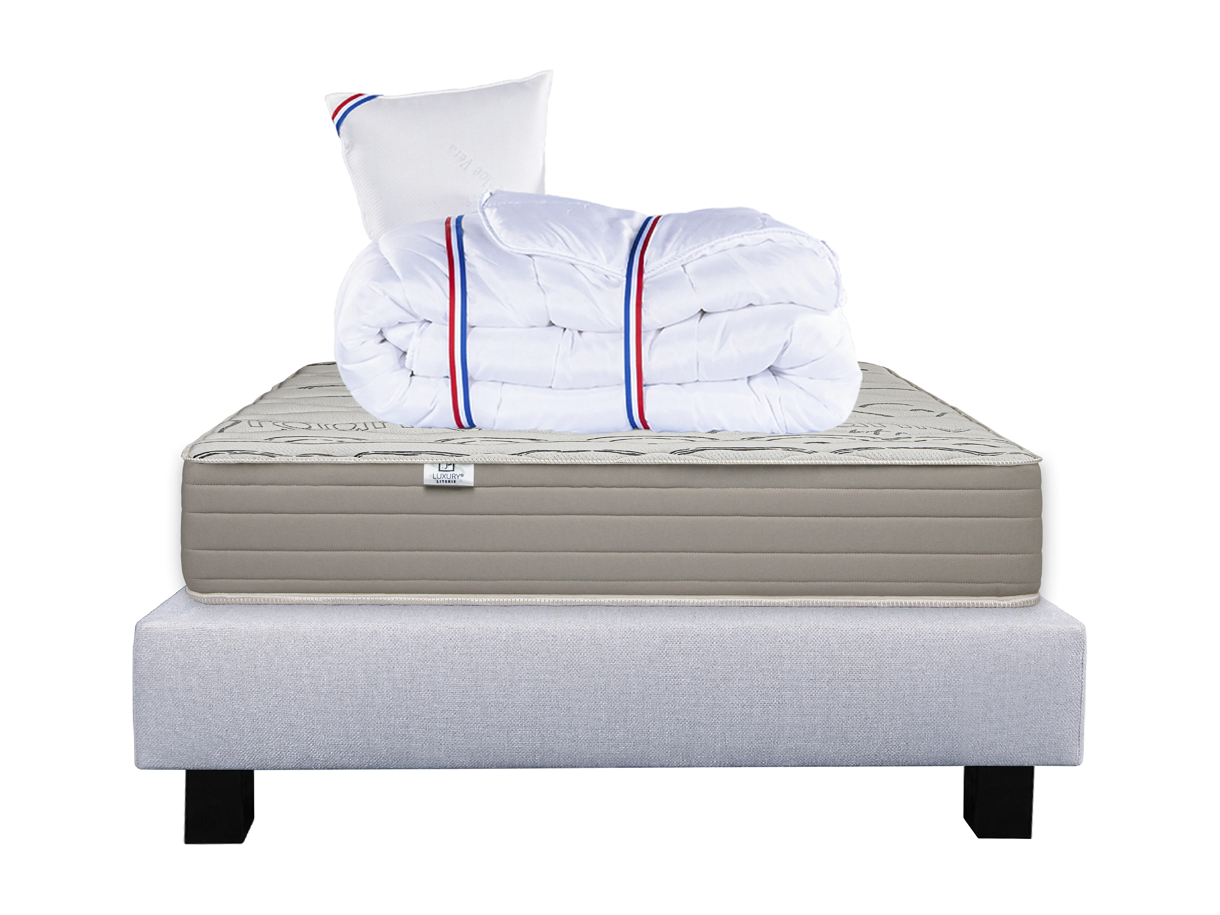 Ensemble Matelas 90x190 cm, Organic Cotton, 24 cm + sommier gris + oreiller + couette