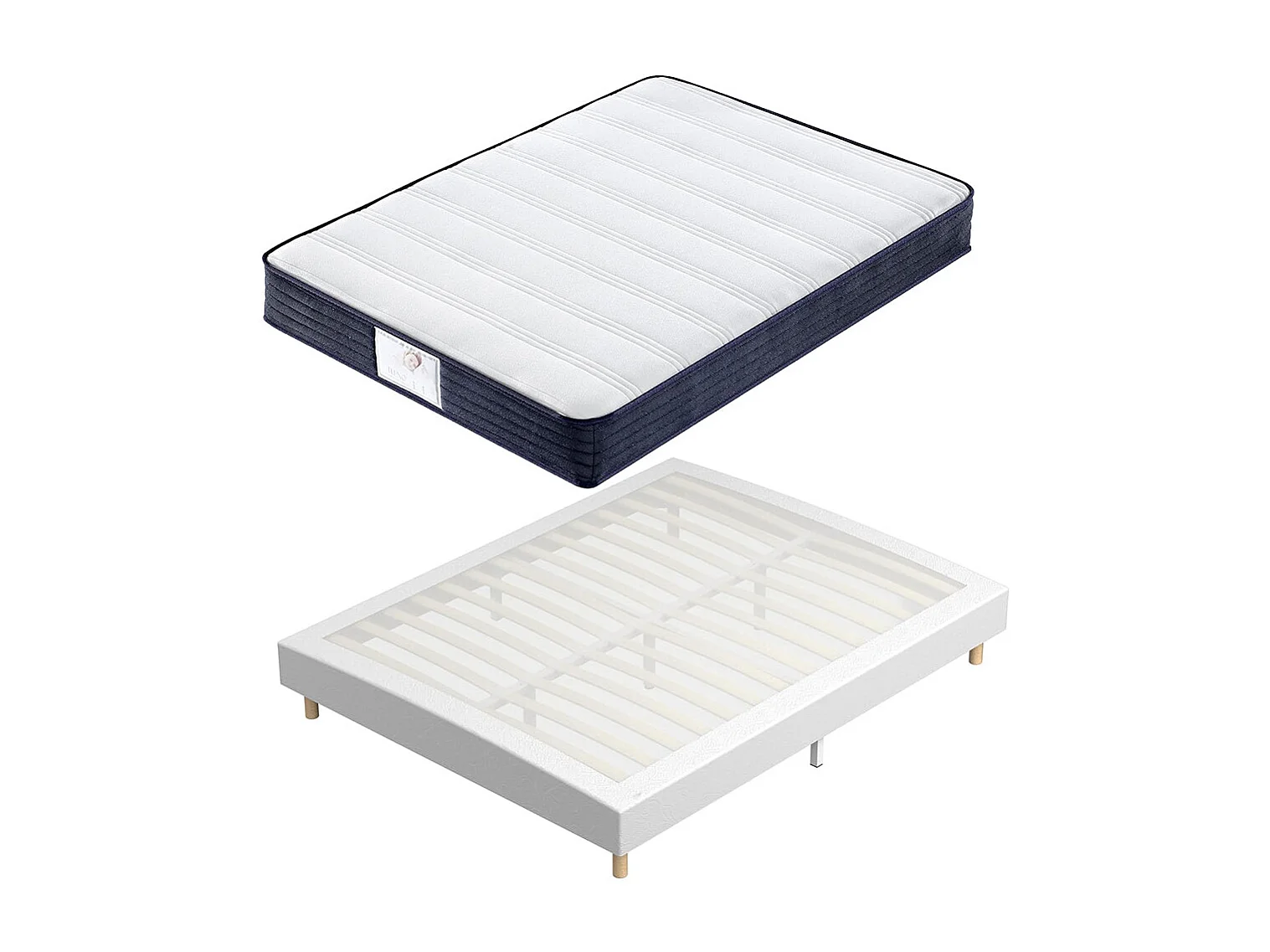 Ensemble Matelas à ressorts+ Lit Sommier Tapissier Déco 140x190cm, Epaisseur du Matelas 22cm