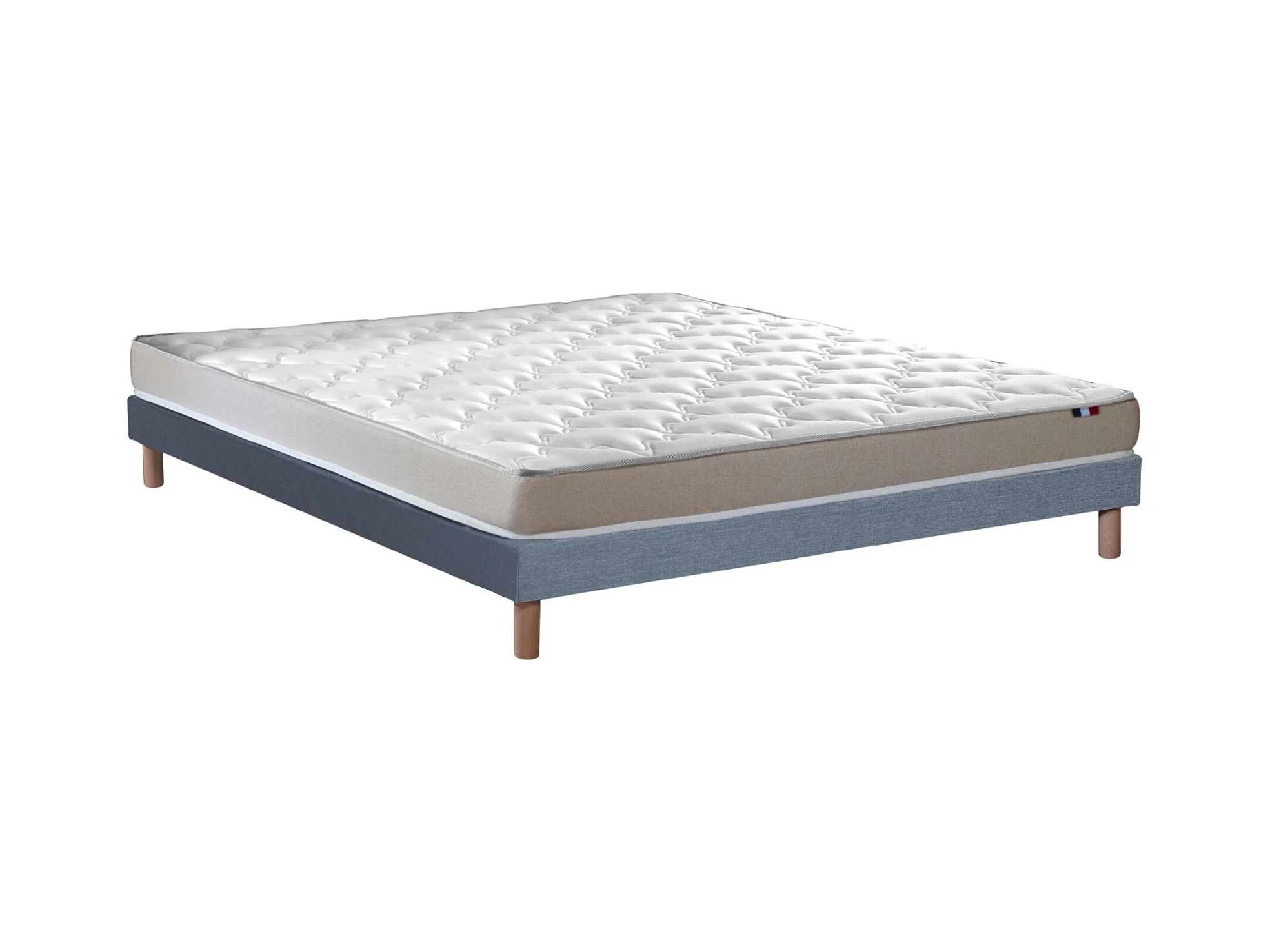 Ensemble Matelas accueil Latex 3 zones INITIAL - Bi Confort Mousse & Latex + Sommier - Made in France Dimensions - 140 x 190 cm, Sommier - Bleu denim