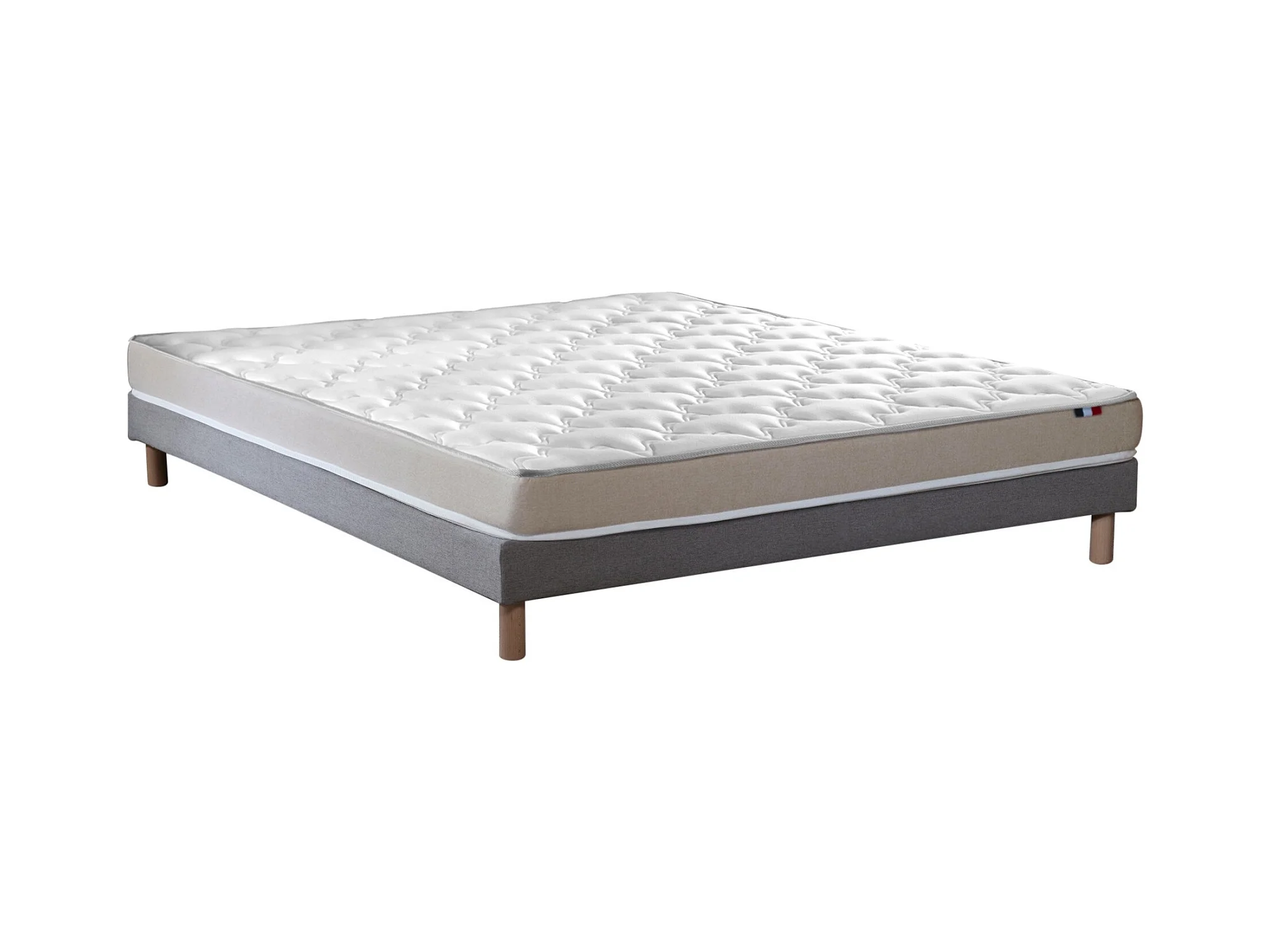 Ensemble Matelas accueil Latex 3 zones INITIAL - Bi Confort Mousse & Latex + Sommier - Made in France Dimensions - 140 x 190 cm, Sommier - Gris chiné