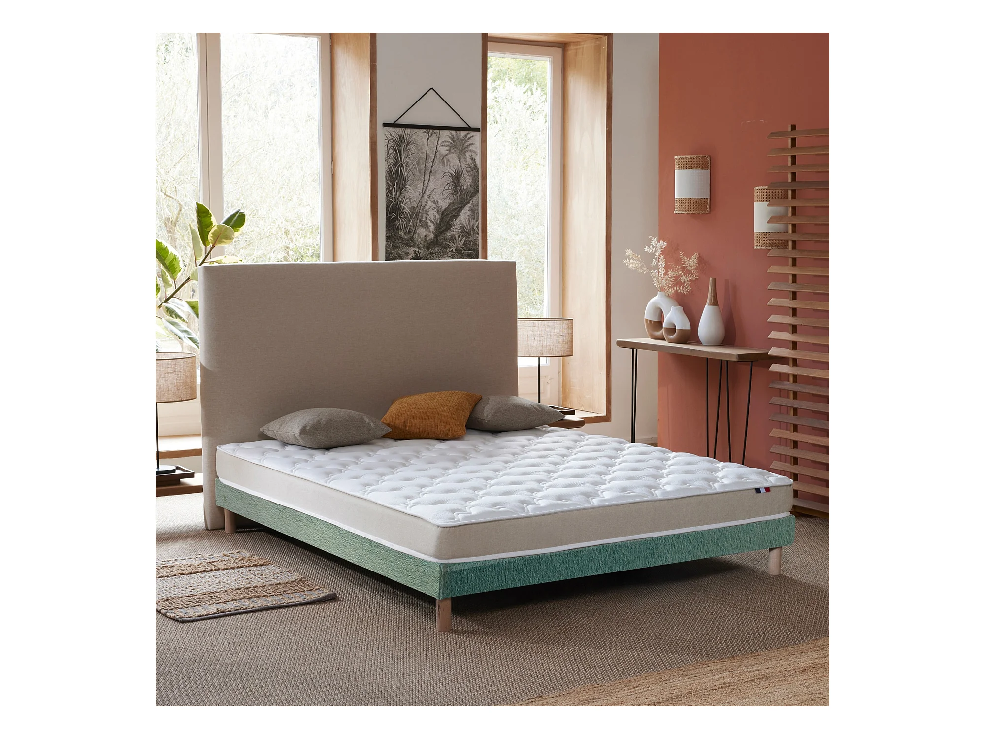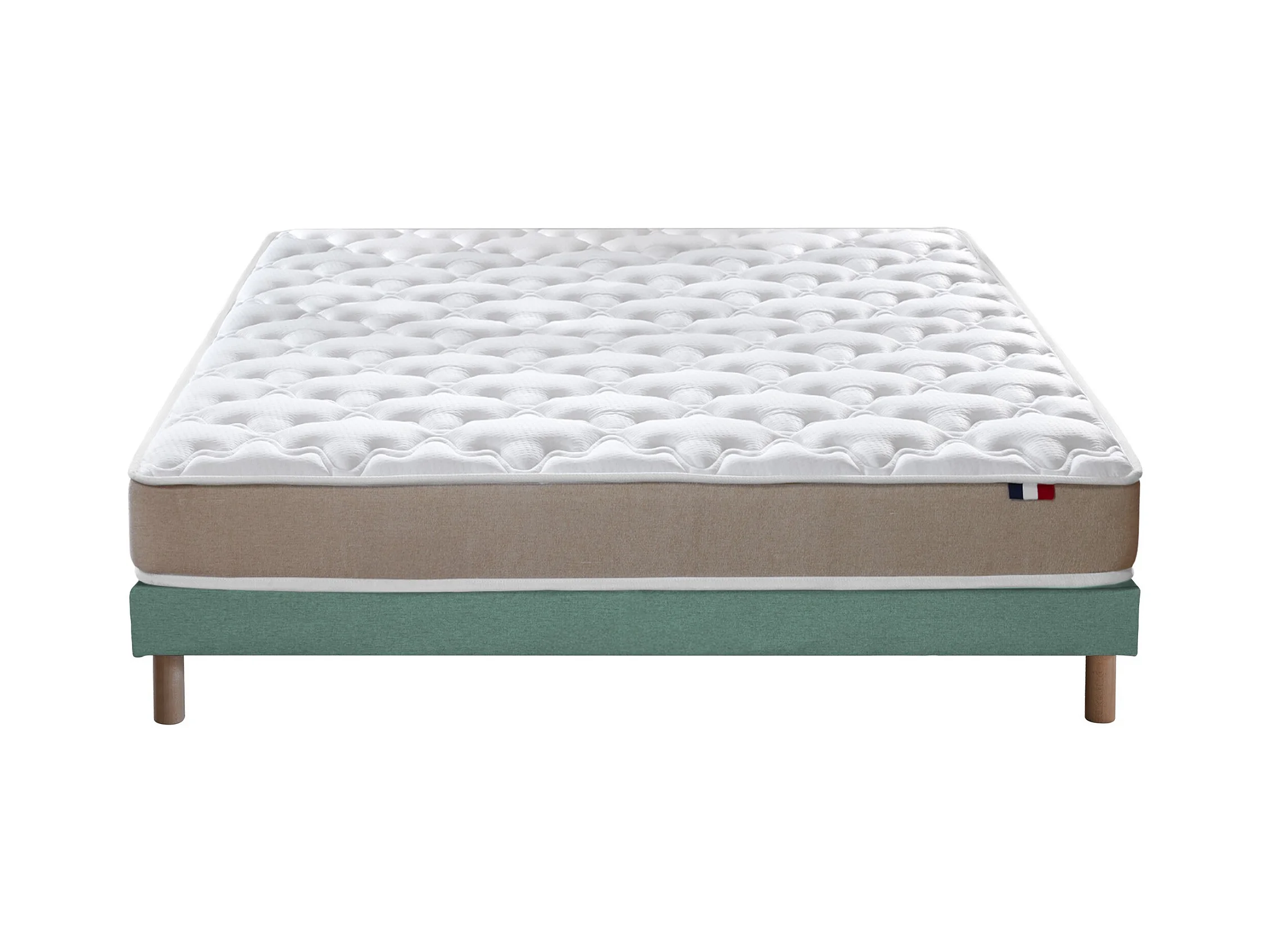 Ensemble Matelas accueil Latex 3 zones INITIAL - Bi Confort Mousse & Latex + Sommier - Made in France Dimensions - 140 x 190 cm, Sommier - Vert celadon