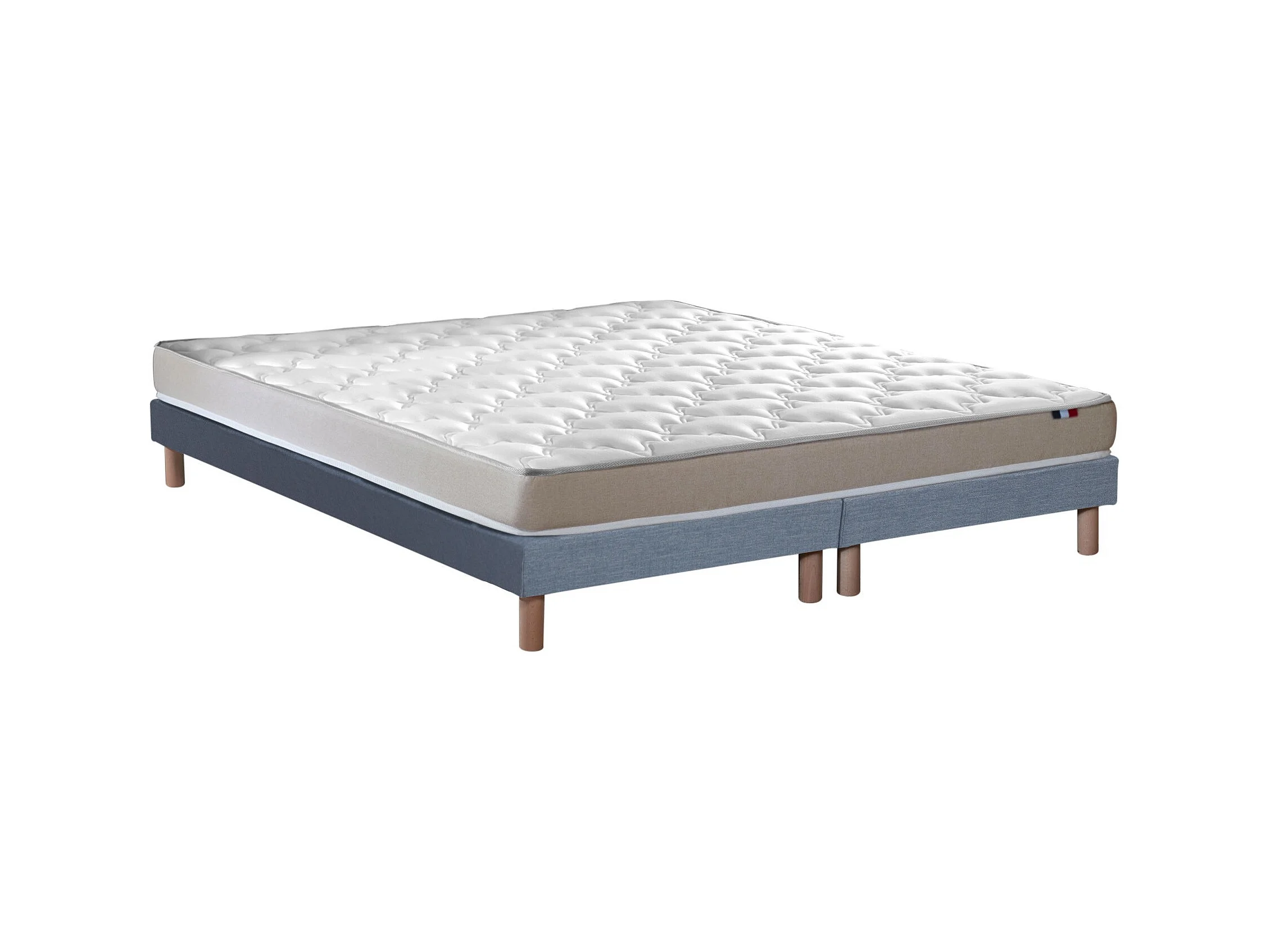 Ensemble Matelas accueil Latex 3 zones INITIAL - Bi Confort Mousse & Latex + Sommier - Made in France Dimensions - 2x80 x 200 cm, Sommier - Bleu denim