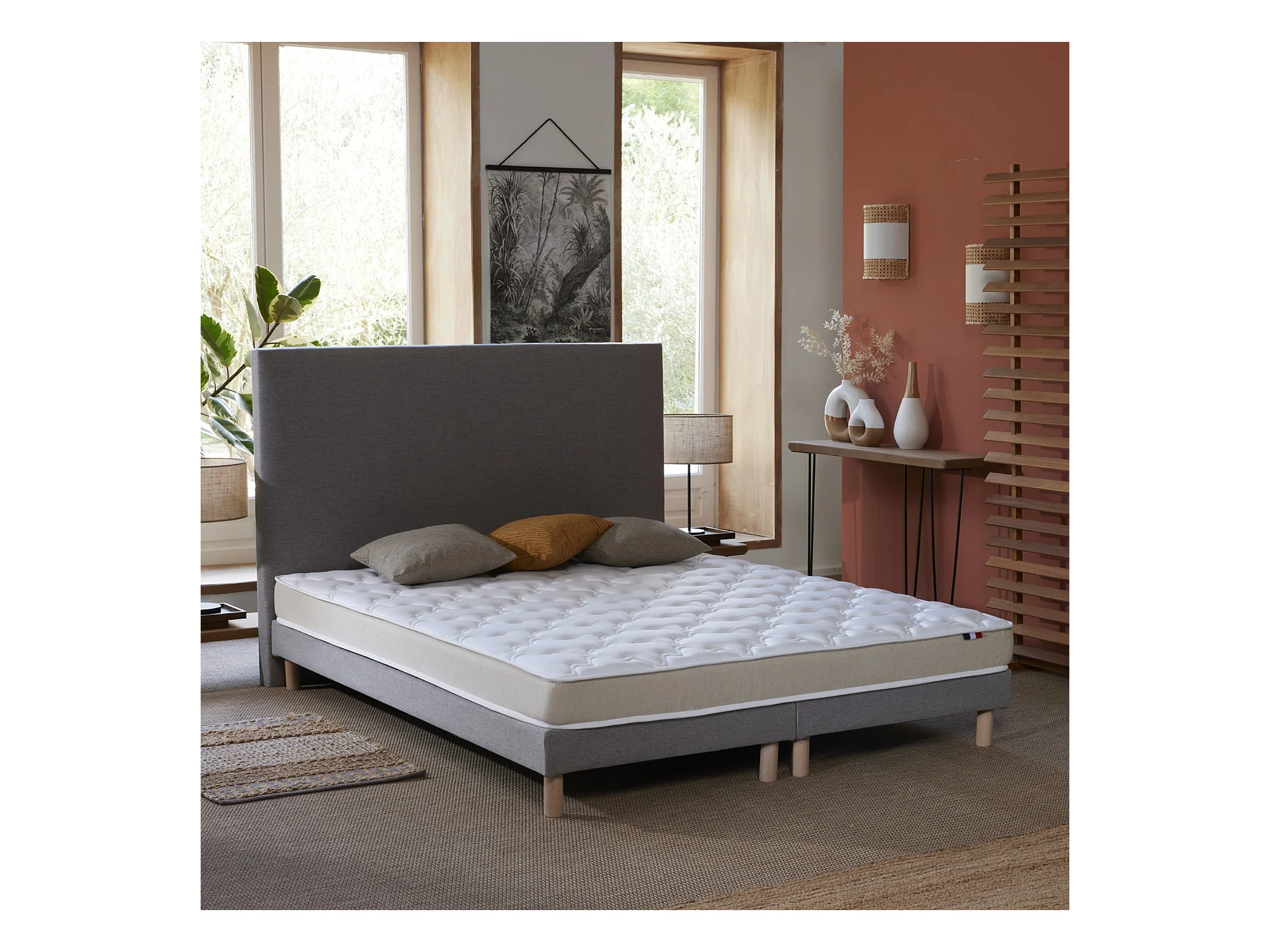 Ensemble Matelas accueil Latex 3 zones INITIAL - Bi Confort Mousse & Latex + Sommier - Made in France Dimensions - 2x80 x 200 cm, Sommier - Gris chiné