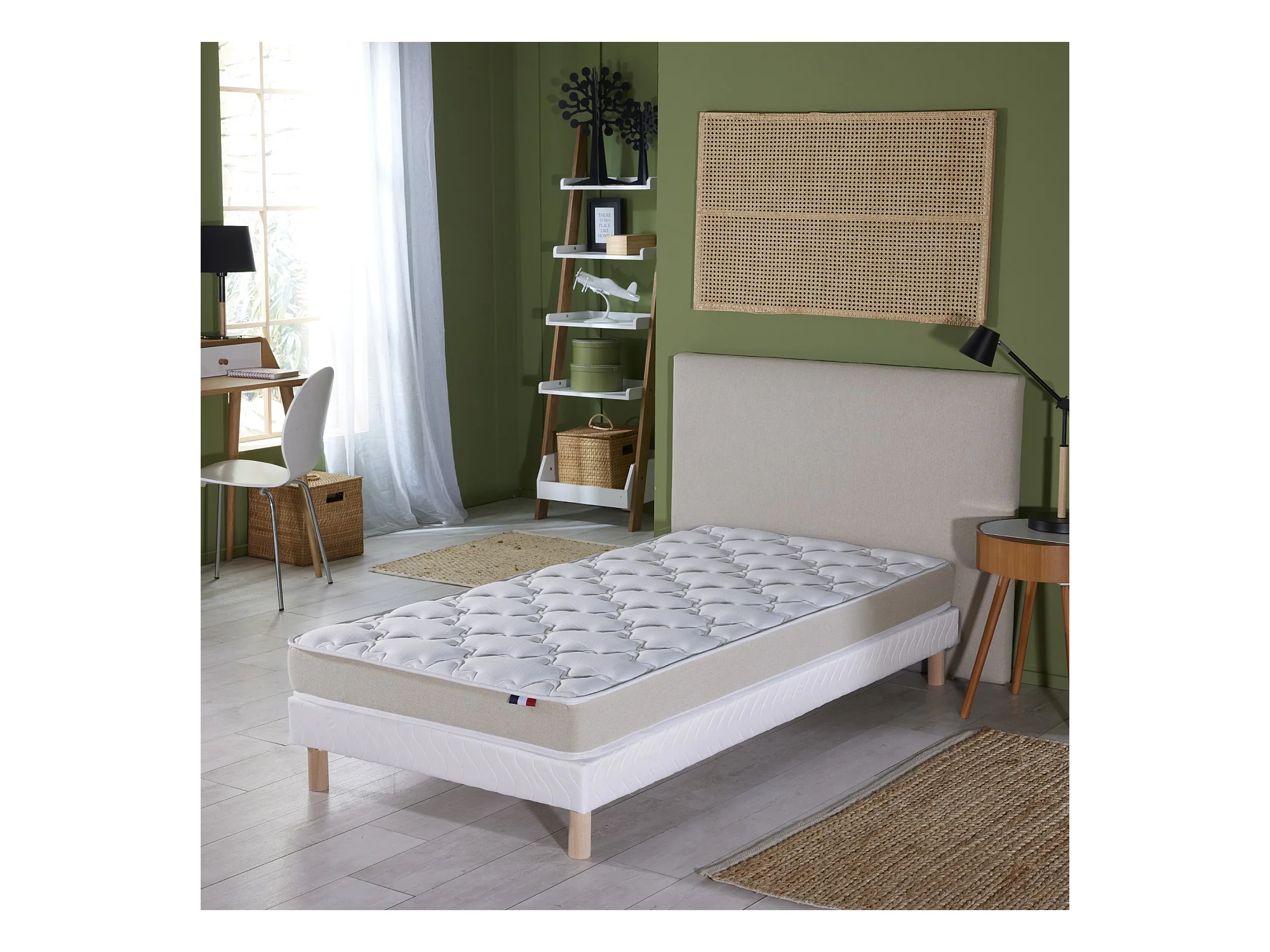 Ensemble Matelas accueil Latex 3 zones INITIAL - Bi Confort Mousse & Latex + Sommier - Made in France Dimensions - 90 x 190 cm, Sommier - Blanc