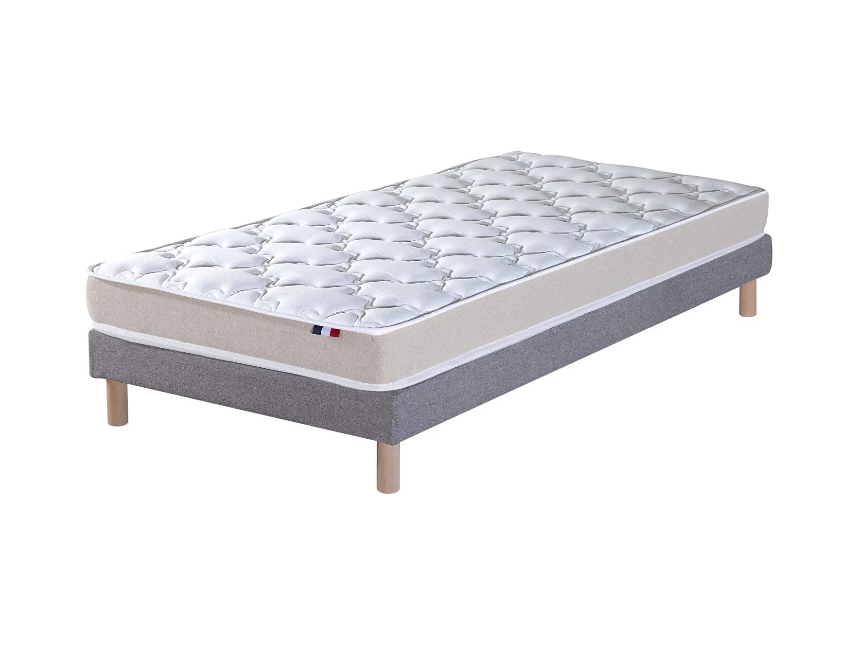 Ensemble Matelas accueil Latex 3 zones INITIAL - Bi Confort Mousse & Latex + Sommier - Made in France Dimensions - 90 x 190 cm, Sommier - Gris chiné