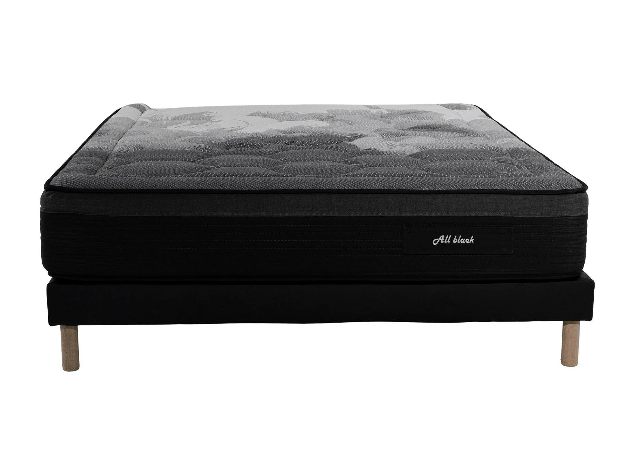 Ensemble Matelas All Black | 140x190 | mémoire | 28 cm | Sommier tapissier simili noir