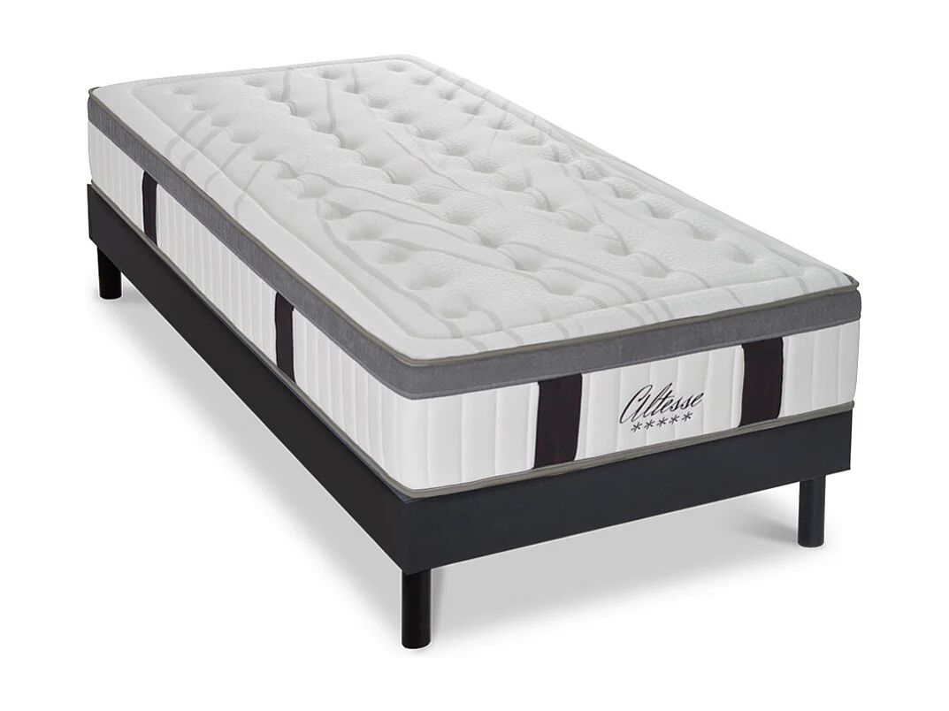 Ensemble Matelas Altesse Mousse Haute densité Accueil Mémoire - 26 cm et Kit Bois Noir - 90 x 200 cm