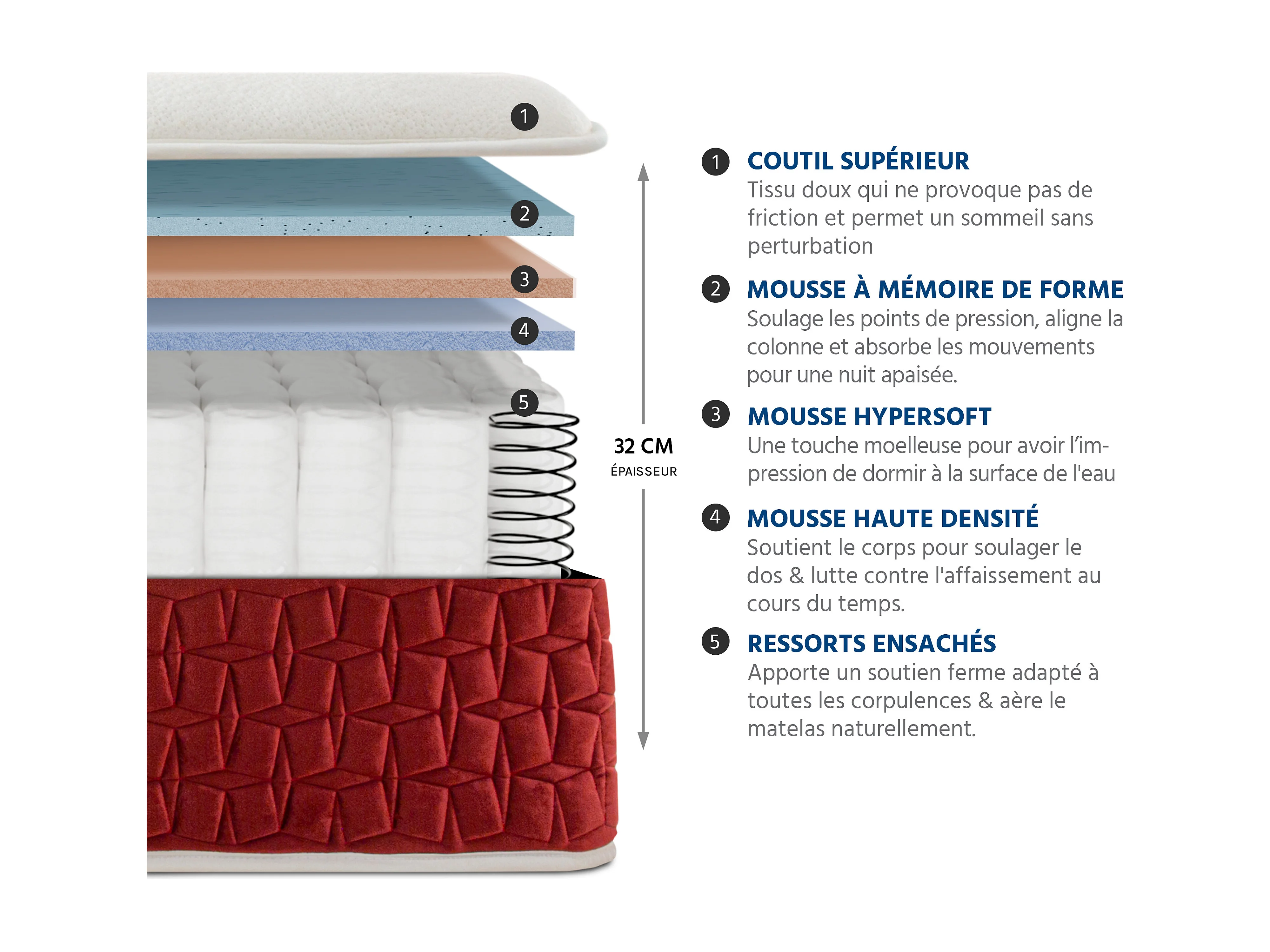 Ensemble Matelas Passion Ressorts ensachés Accueil mémoire et sommier kit bois - 140 x 190 cm