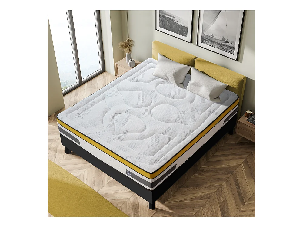 Ensemble Matelas Aubertin Ressorts ensachés Accueil mémoire et sommier kit bois noir - 90 x190 cm