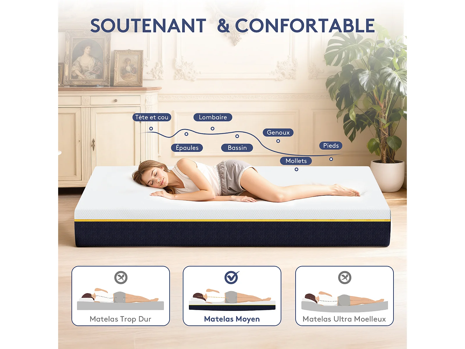 Ensemble matelas double en mousse de 17 cm + sommier à lattes larges 140x190 cm