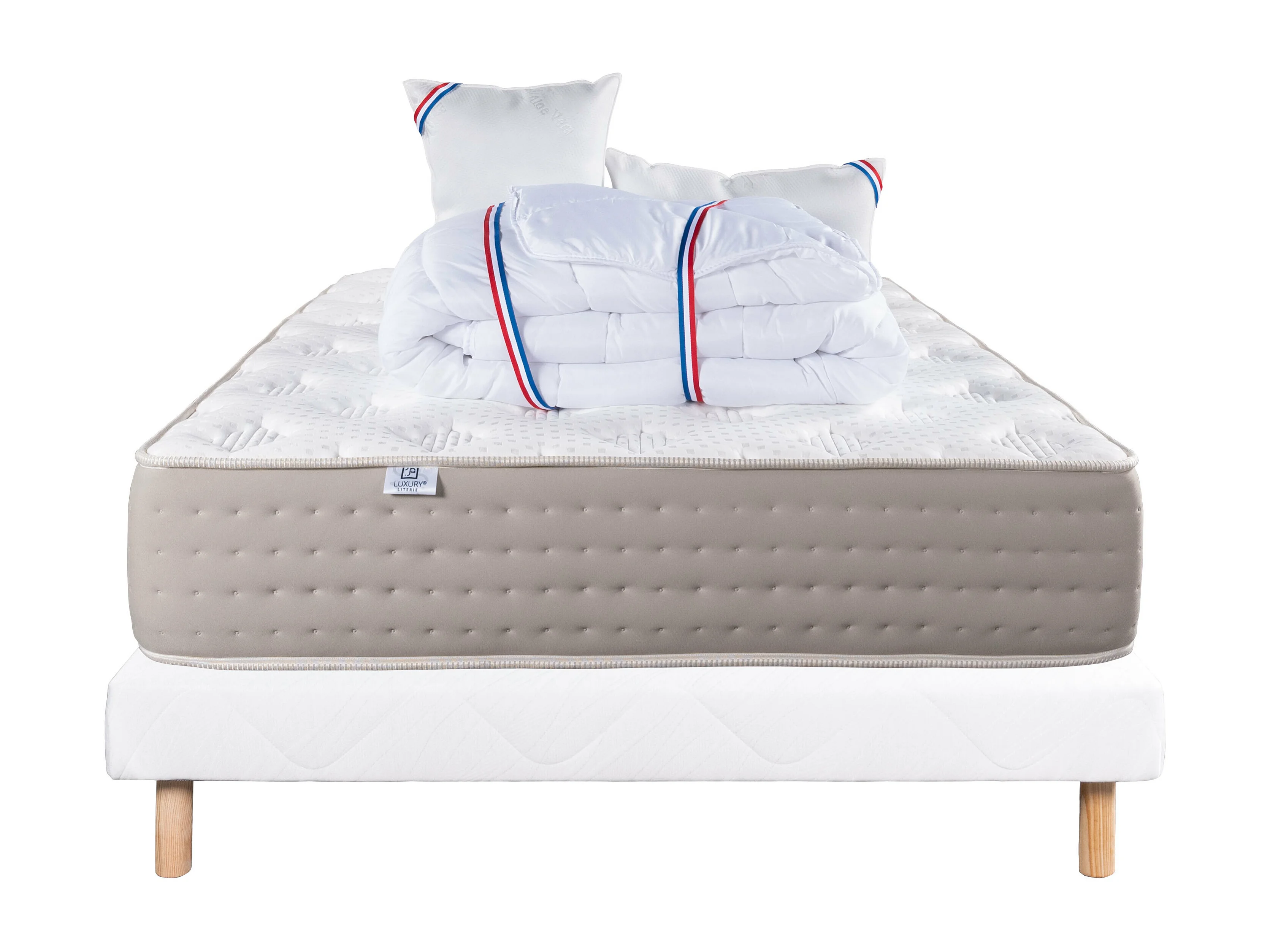 Ensemble Matelas 140x200 cm, Dreamlux, 26 cm + sommier blanc + 2 oreillers + couette