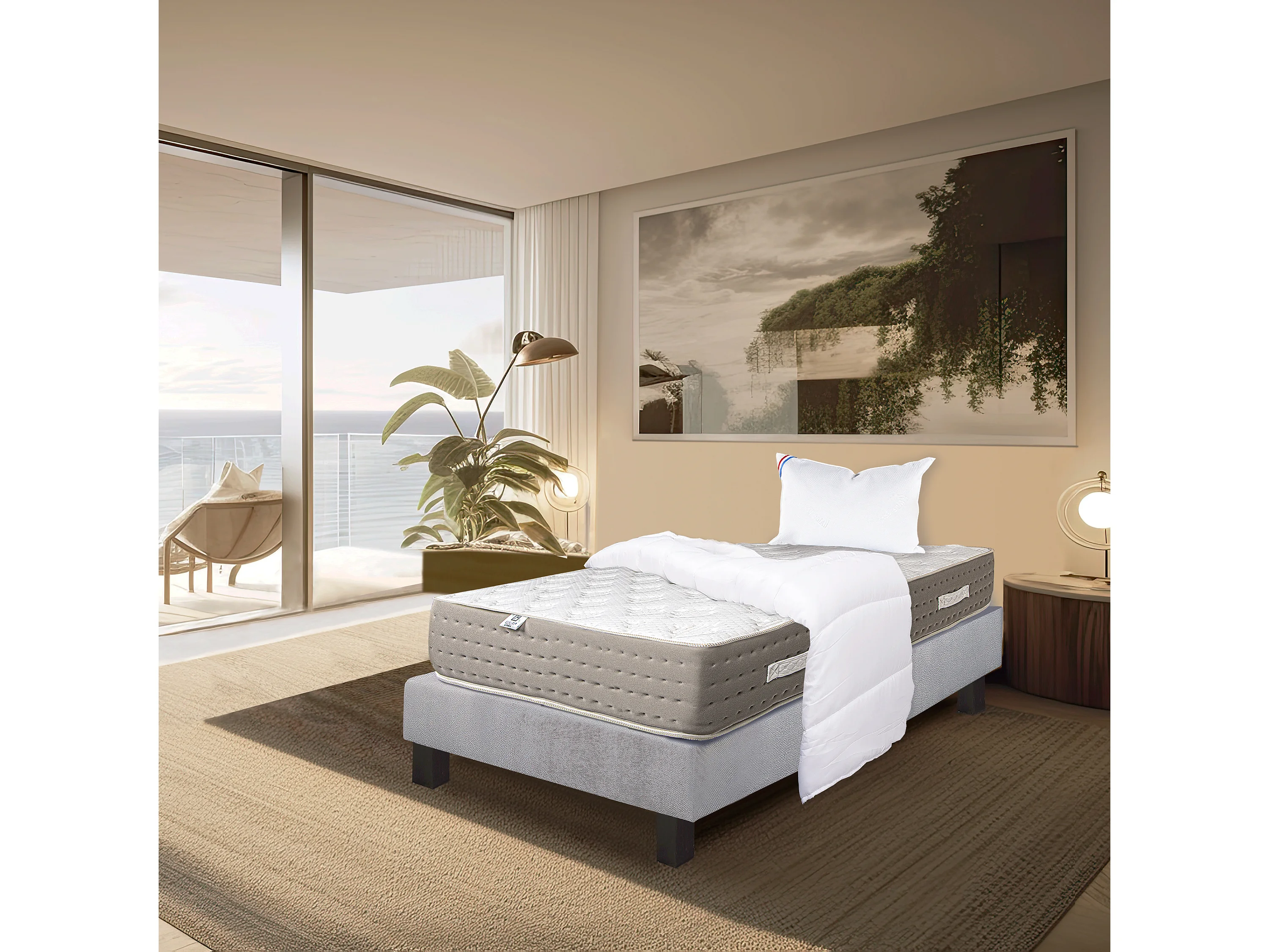 Ensemble Matelas 90x190 cm, Dreamlux, 26 cm + sommier gris + oreiller + couette